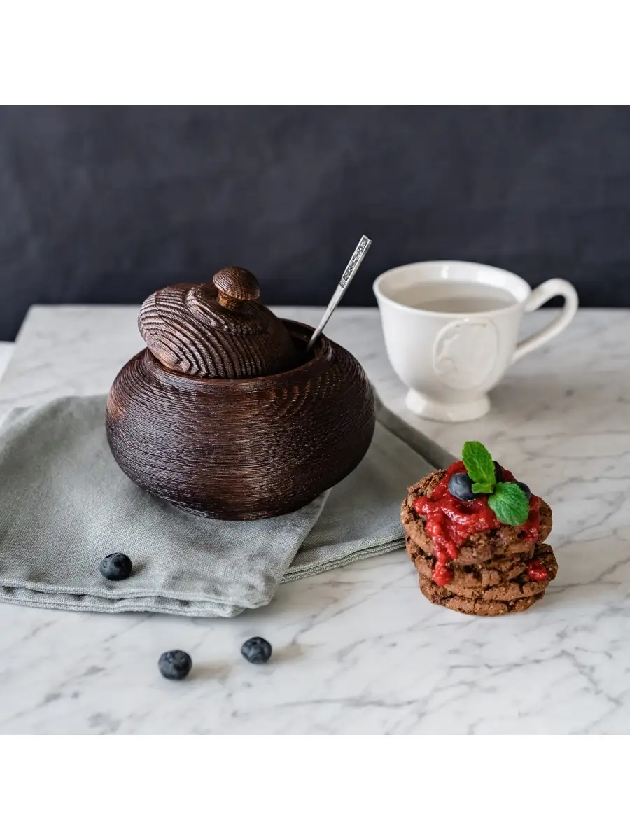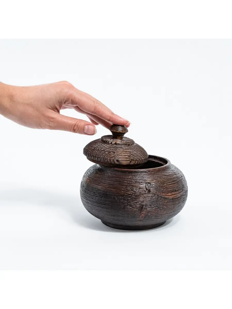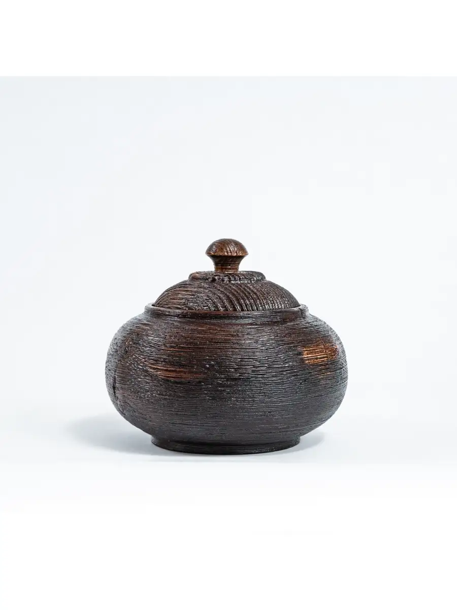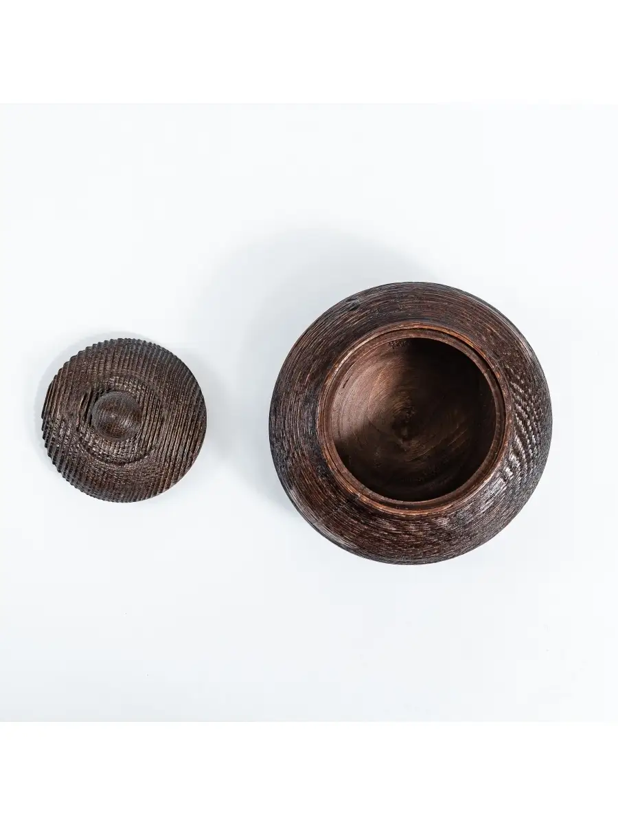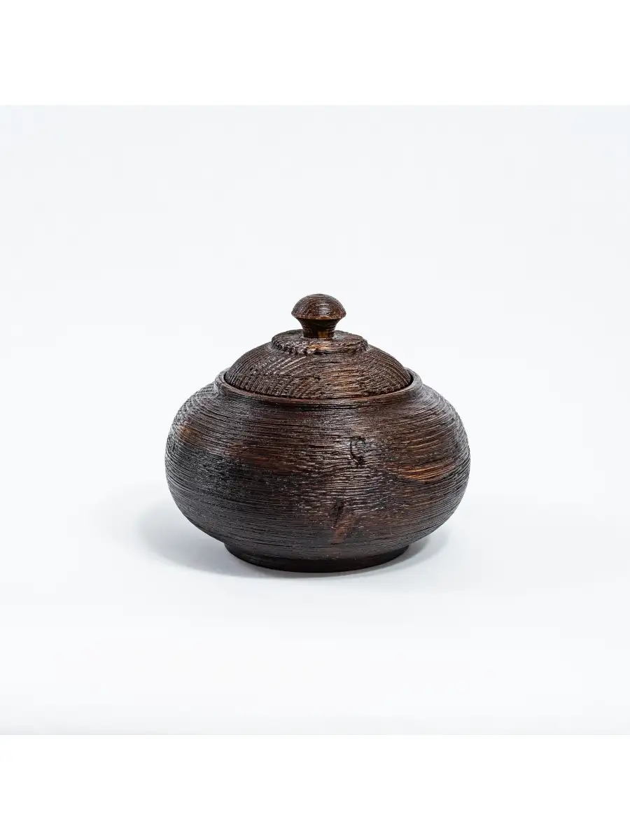 **Текстурированная деревянная кубышка (бочонок) с крышкой из сосны.** Лучше всего для хранения меда подходит посуда, изготовленная из древесины. Дерево придает меду ненавязчивые, очень приятные вкусовые оттенки, гармонично сочетающиеся с его в ароматом. Высокая плотность древесины, хорошо защищает мед от внешних воздействий.Также идеально подходит для варенья, конфет, орехов, сахара. Хороша для хранения трав.