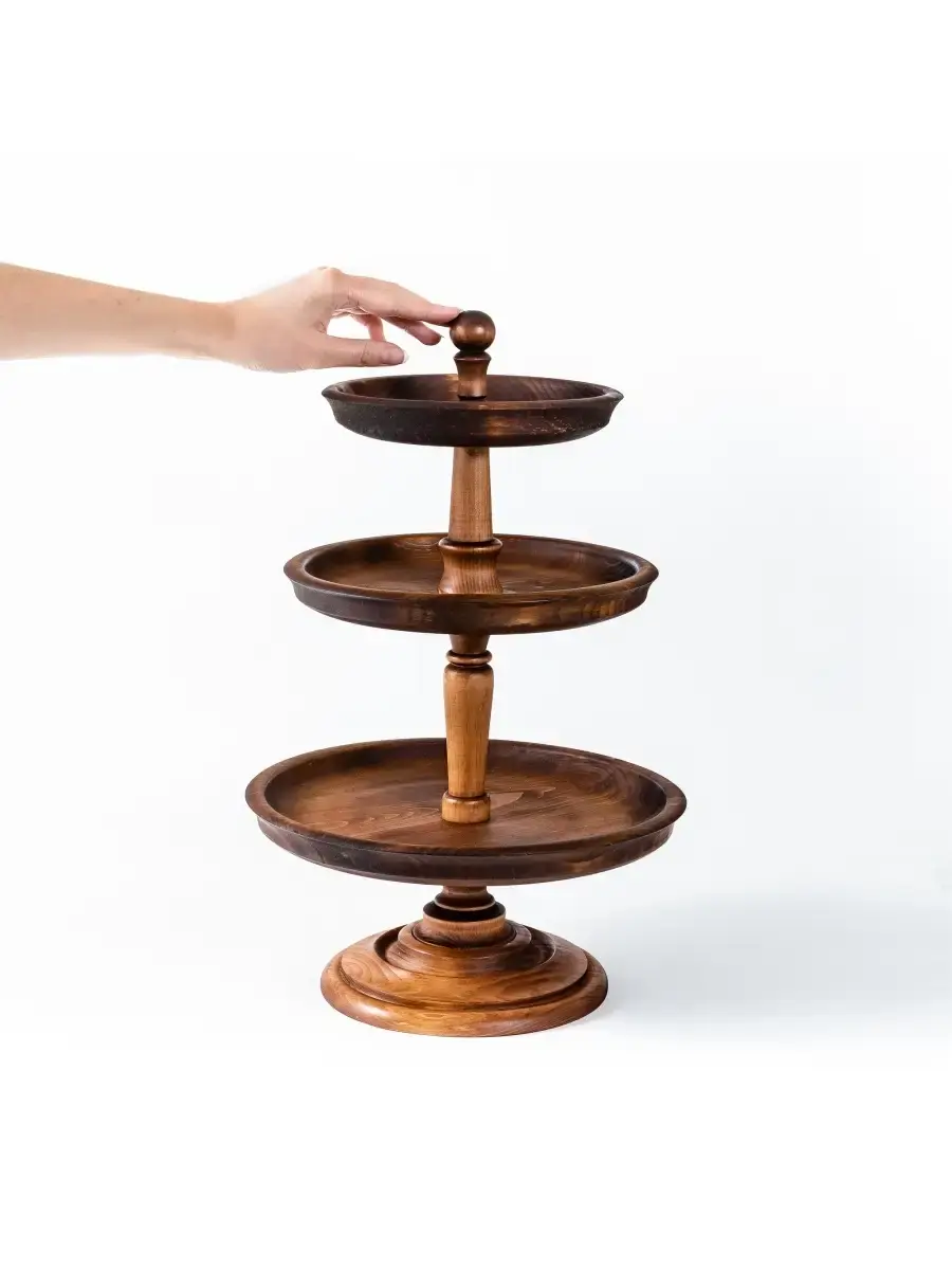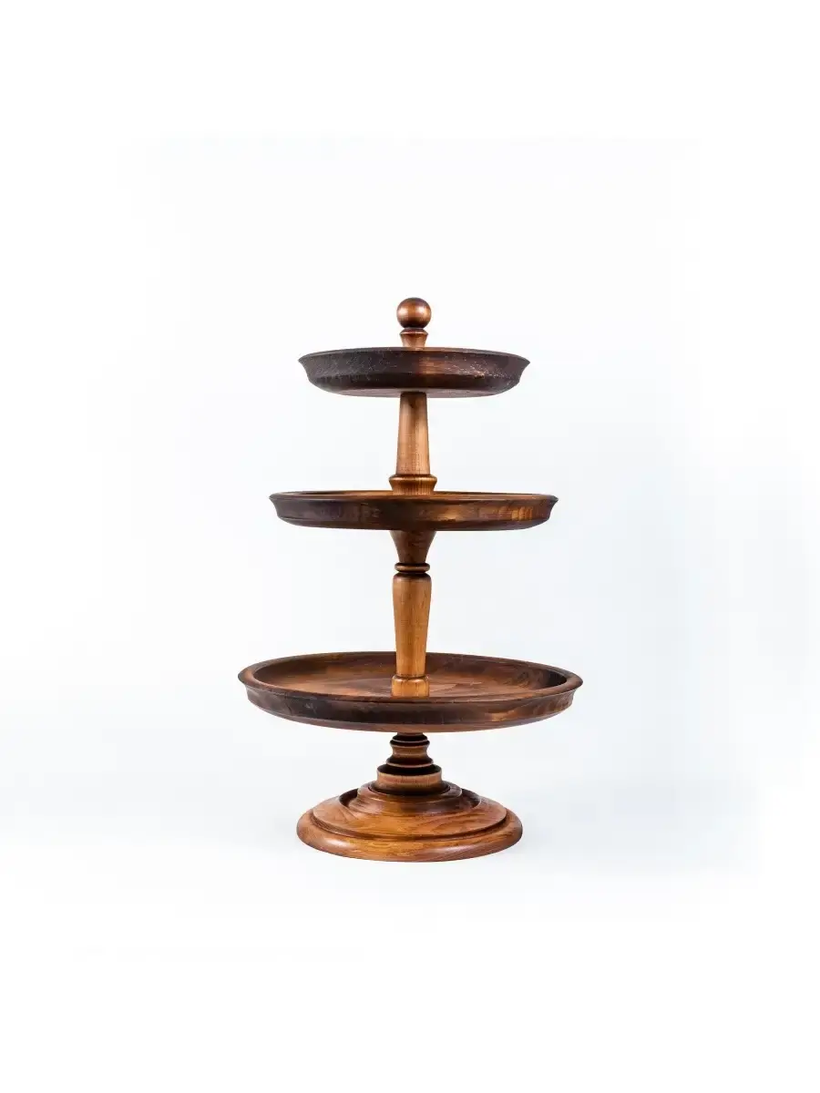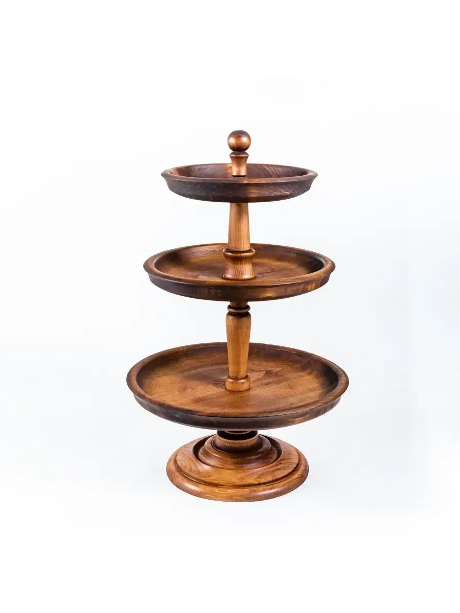 Трехъярусная ваза для фруктов и сладостей (фруктовница) из кедра. Этажерка-фруктовница - это прекрасная возможность поиграть с настроением на кухне и столе. Добавьте красок в вашу повседневность, создав яркую фруктово-конфетную композицию. Вашим домашним это точно понравится! Деревянная фруктовница привнесет в атмосферу кухни или другого помещения иллюзию воздуха или некой легкости. Прекрасно подходит для любого пространства, занимает мало места. В целом очень интересная и красивая вещь, которую не стыдно поставить на праздничный стол. Очень удобна в использовании, украсит любой интерьер и поднимет настроение даже детям! Размер: диаметр нижней чаши-305 мм., диаметр средней чаши-255 мм., диаметр верхней чаши 200 мм., высота 470 мм.