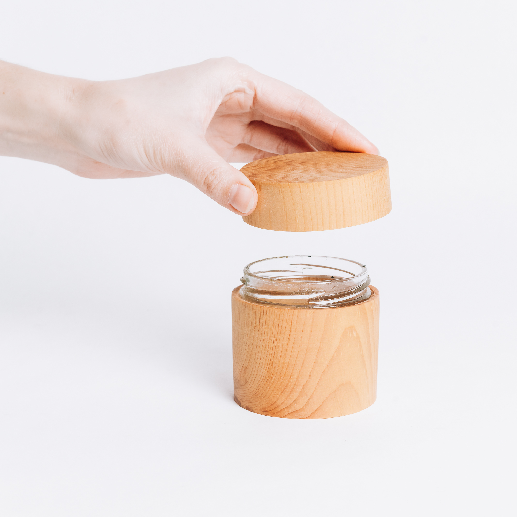 Герметичный контейнер (баночка) с крышкой из сибирского кедра.