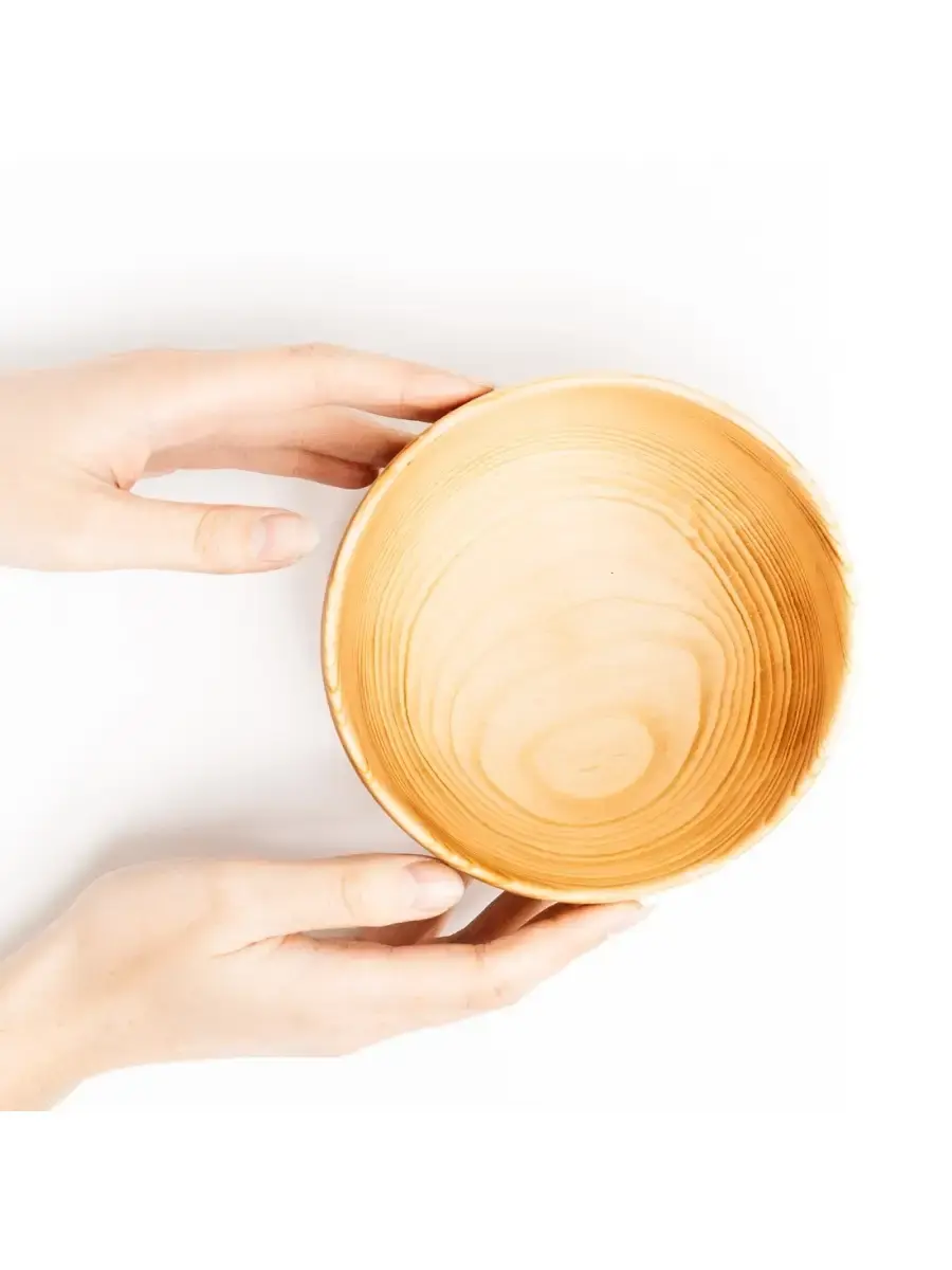 Глубокая тарелка для ароматного супа и наваристого бульона из натурального дерева Сибирский Кедр. Популярность посуды из кедра объясняется как красотой древесины, так и ее лечебными качествами. Тарелки и миски удобны для приема пищи и для ее хранения. Люди, пользующиеся такими тарелками, могут подтвердить, что еда сохраняет свежесть намного дольше: она не прокиснет и не покроется плесенью. Древесина кедра придаст пище особый аромат и вкус. Вся посуда, которая контактирует с едой, водой, покрывается специальным составом из пчелиного воска, растительного масла и кедровой смолы. Перед использованием обязательно промыть теплой проточной водой, чтоб смыть остатки масла и морилки. Изделие может стать чуть светлее. Первое время возможно оставление следов от морилки, поэтому лучше для протирания использовать бумажные полотенца. Размер: диаметр 14 см., высота 7,5 см, объём 450 мм