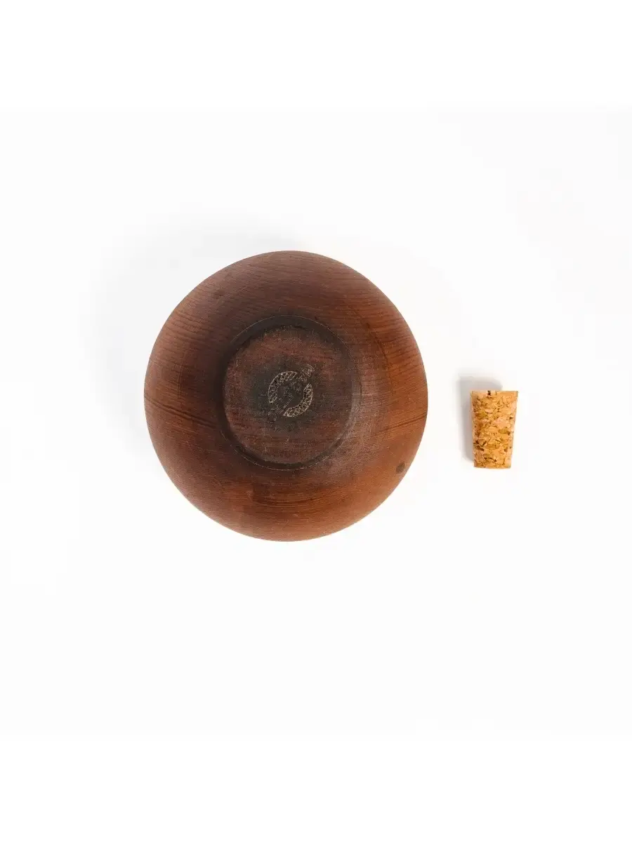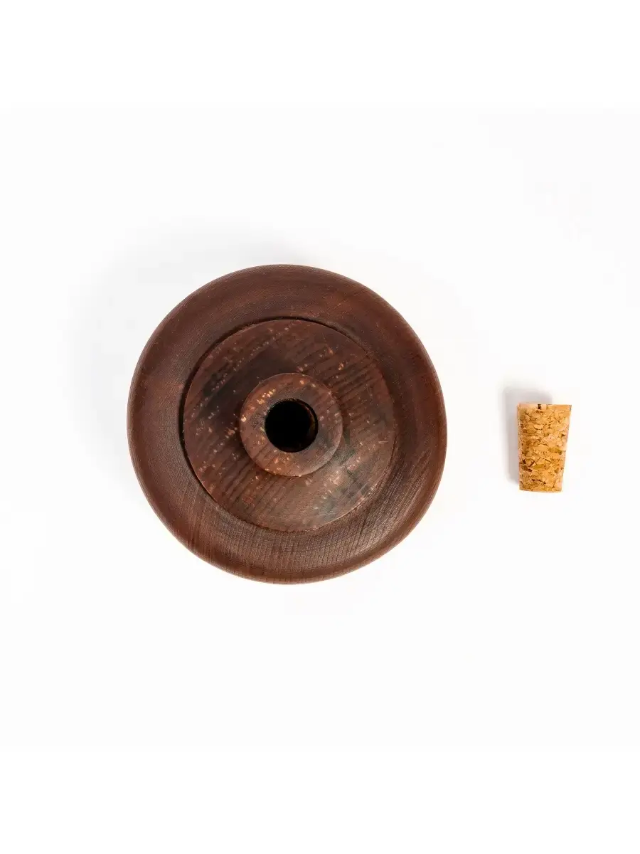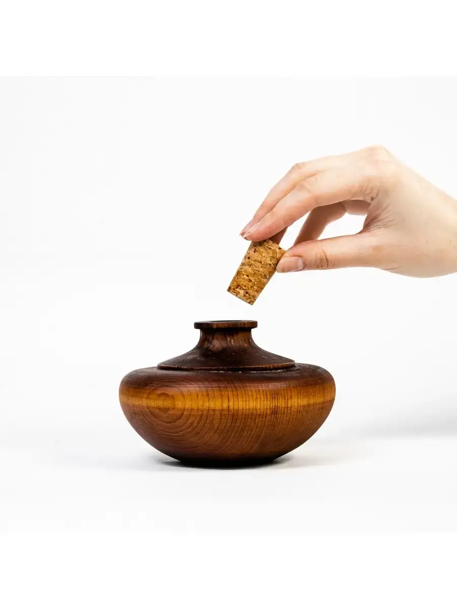 Деревянный сосуд (графин) для жидкости из сибирского кедра. Плюсом такого сосуда является натуральность материала: его не обрабатывают химическими средствами, красками и т.д. В таких сосудах удобно хранить лечебные настойки, алкоголь или простую воду! Дубильные вещества, которыми богата древесина кедра, используемая для производства сосуда, обогащают вкус и аромат жидкости. Также дерево обладает природными антисептическими свойствами, которые улучшают качество жидкости, дополнительно "обеззараживая" ее, и жидкость в сосуде не покрывается плесенью. Древесина кедра хорошо выдерживает высокую влажность, не трескается и не вздувается при высыхании. Размер: высота 8 см., диаметр 13 см., объем 200 мл.