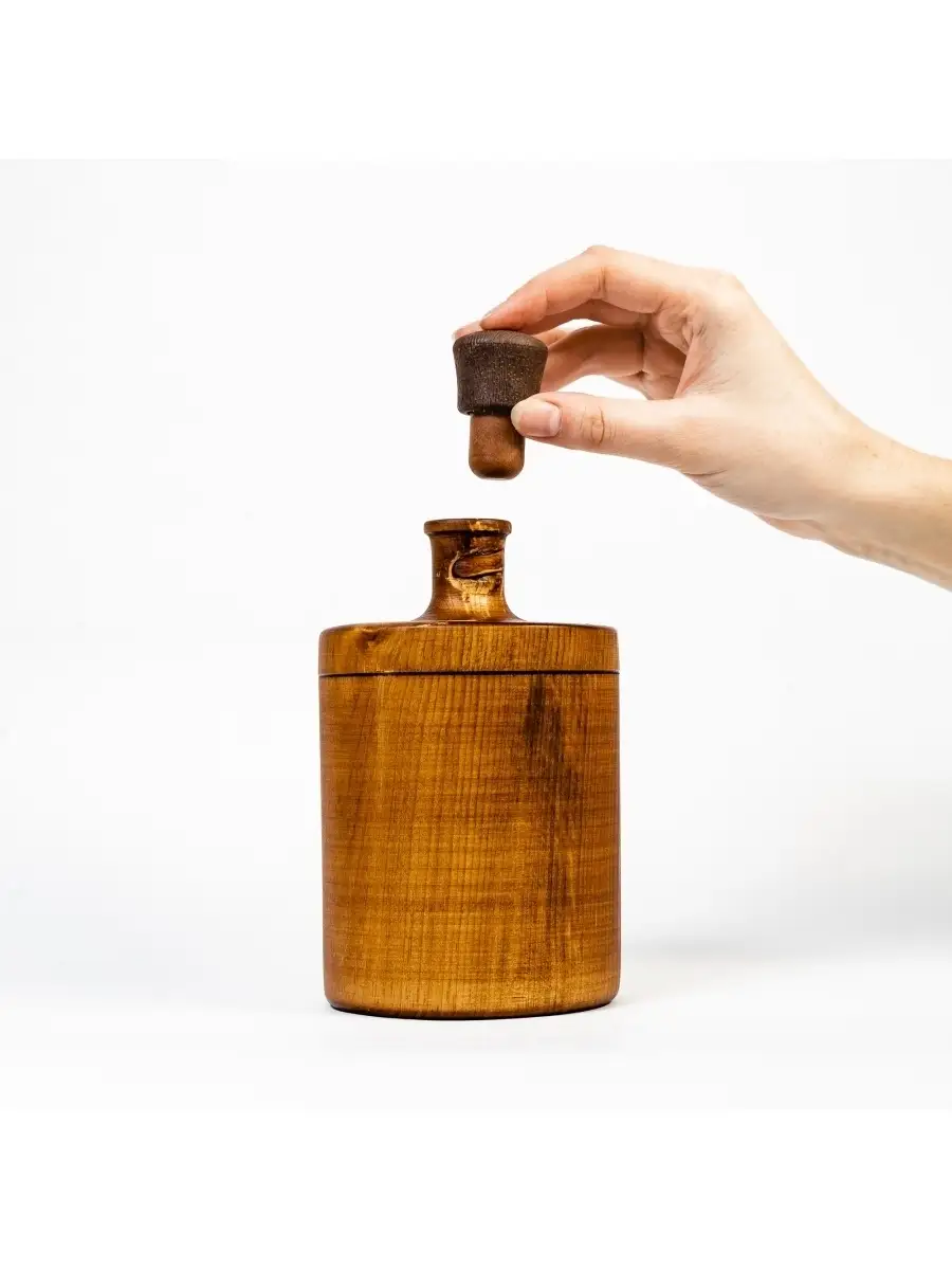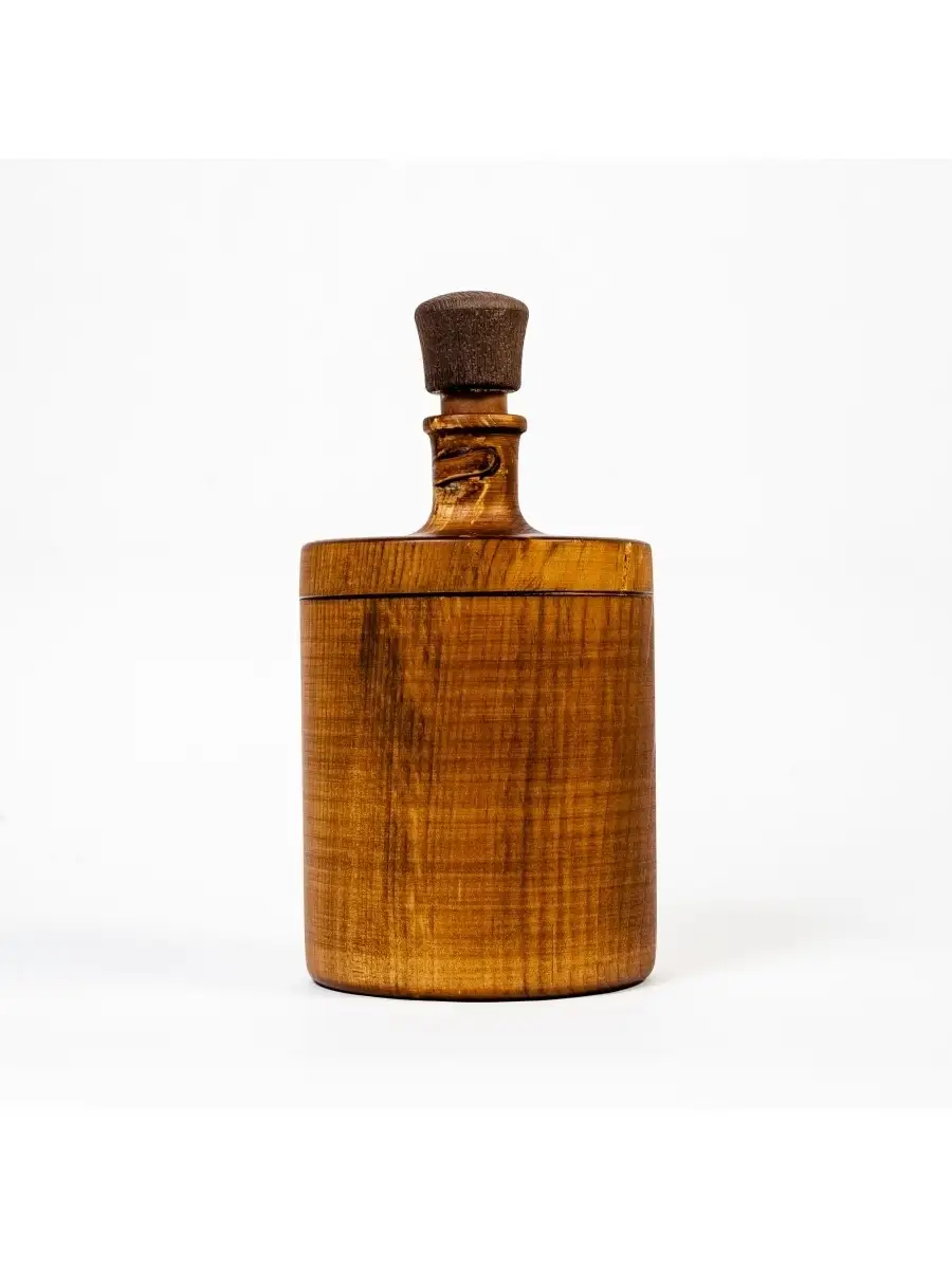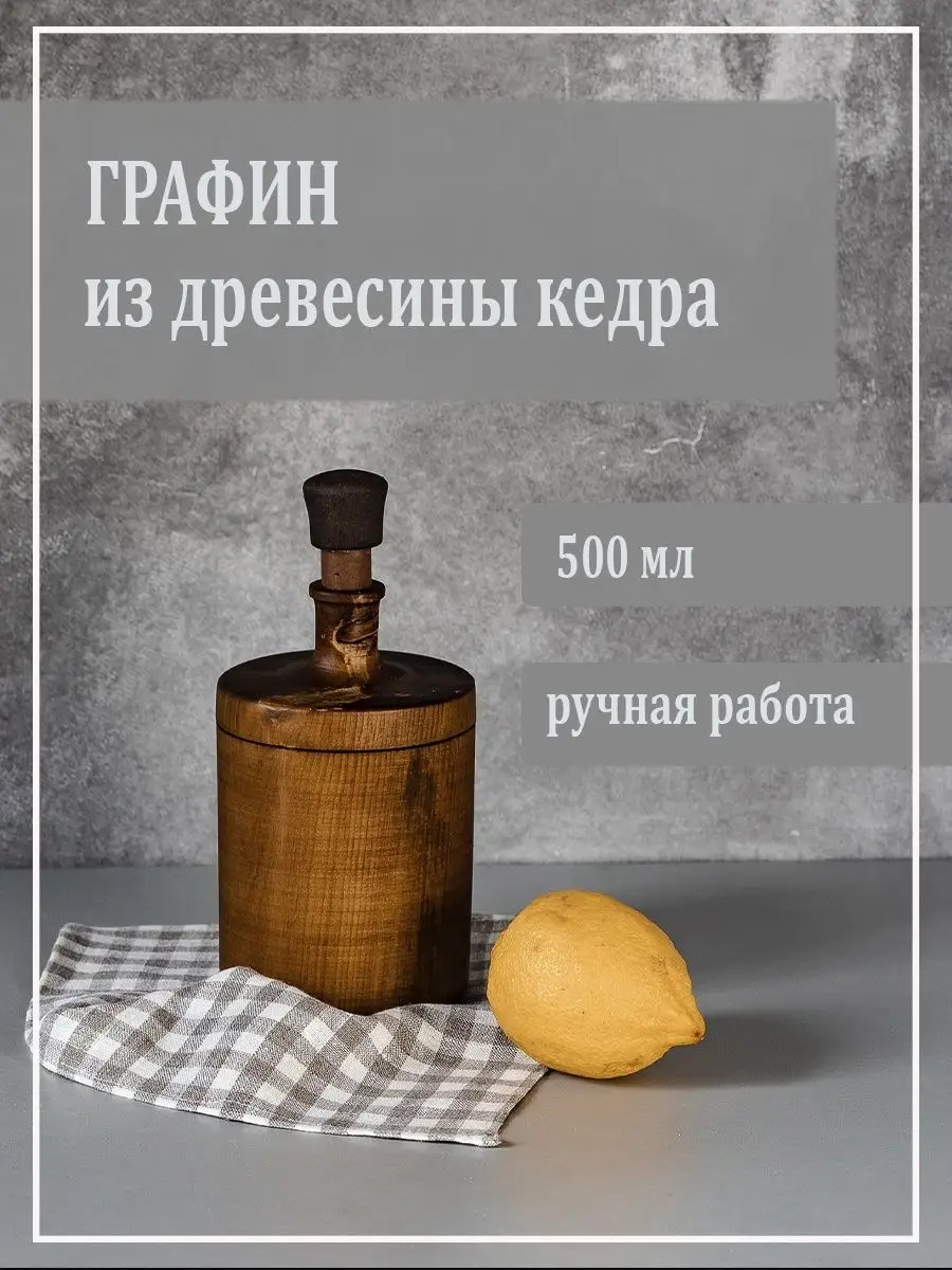 Деревянный графин для жидкости из сибирского кедра. Плюсом такого сосуда является натуральность материала: его не обрабатывают химическими средствами, красками и т.д. В таких сосудах удобно хранить лечебные настойки, алкоголь по истечении полугода после изготовления. Дубильные вещества, которыми богата древесина кедра, используемая для производства сосуда, обогащают вкус и аромат жидкости. Также дерево обладает природными антисептическими свойствами, которые улучшают качество жидкости, дополнительно "обеззараживая" ее, и жидкость в сосуде не покрывается плесенью. Древесина кедра хорошо выдерживает высокую влажность, не трескается и не вздувается при высыхании. Пропитаны составом из растительного масла пчелиного воска и кедровой смолы! Чудесный запах дерева! Ручная работа! Для алкогольных напитков, настоек, лекарств и пр. Размер: высота 16 см., диаметр 10 см., объем 500 мл.