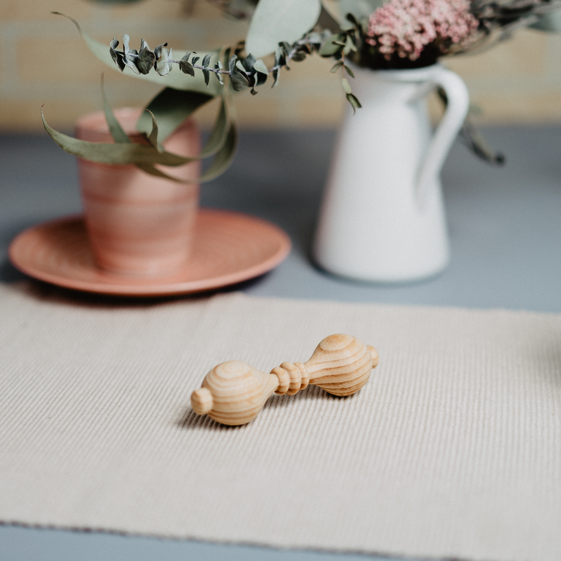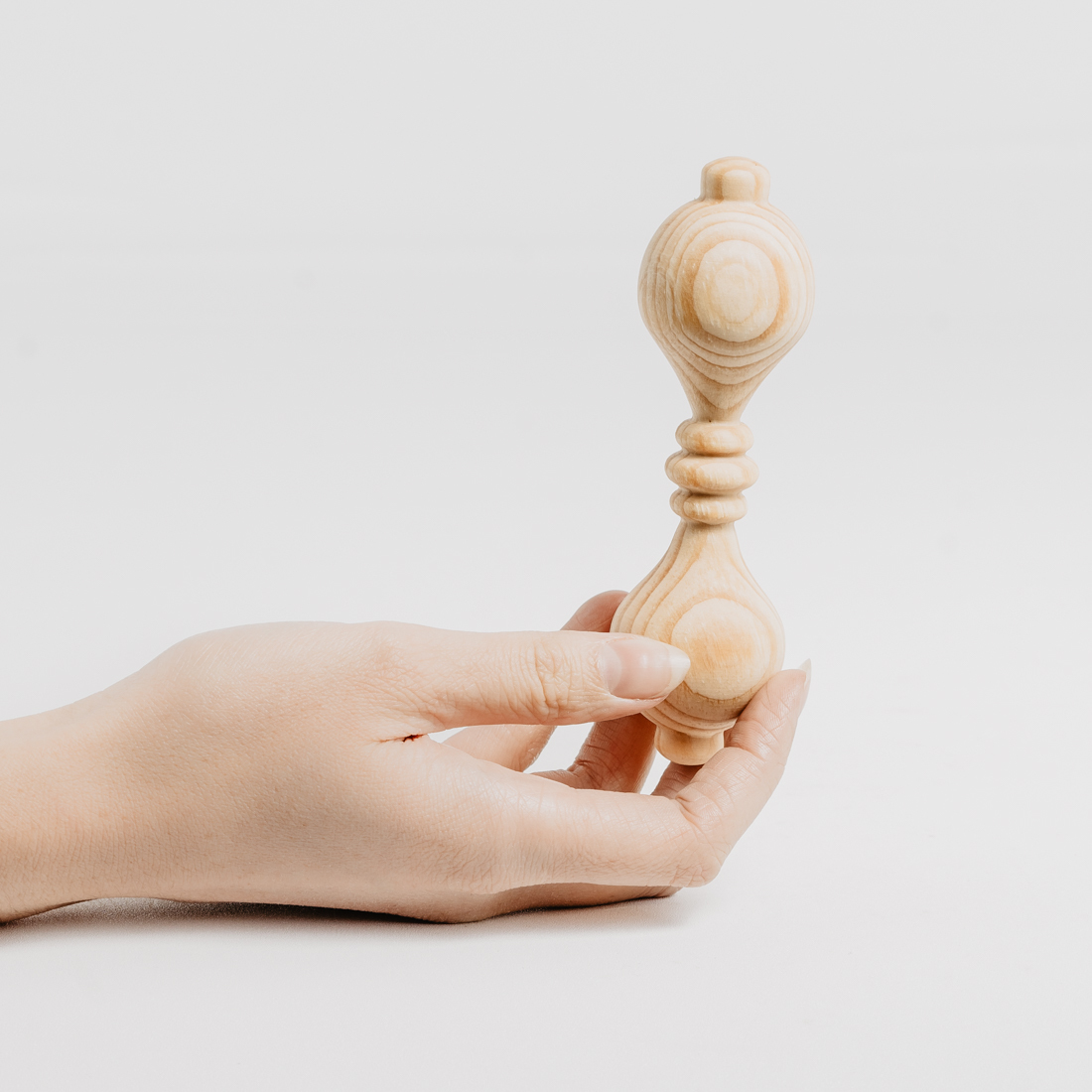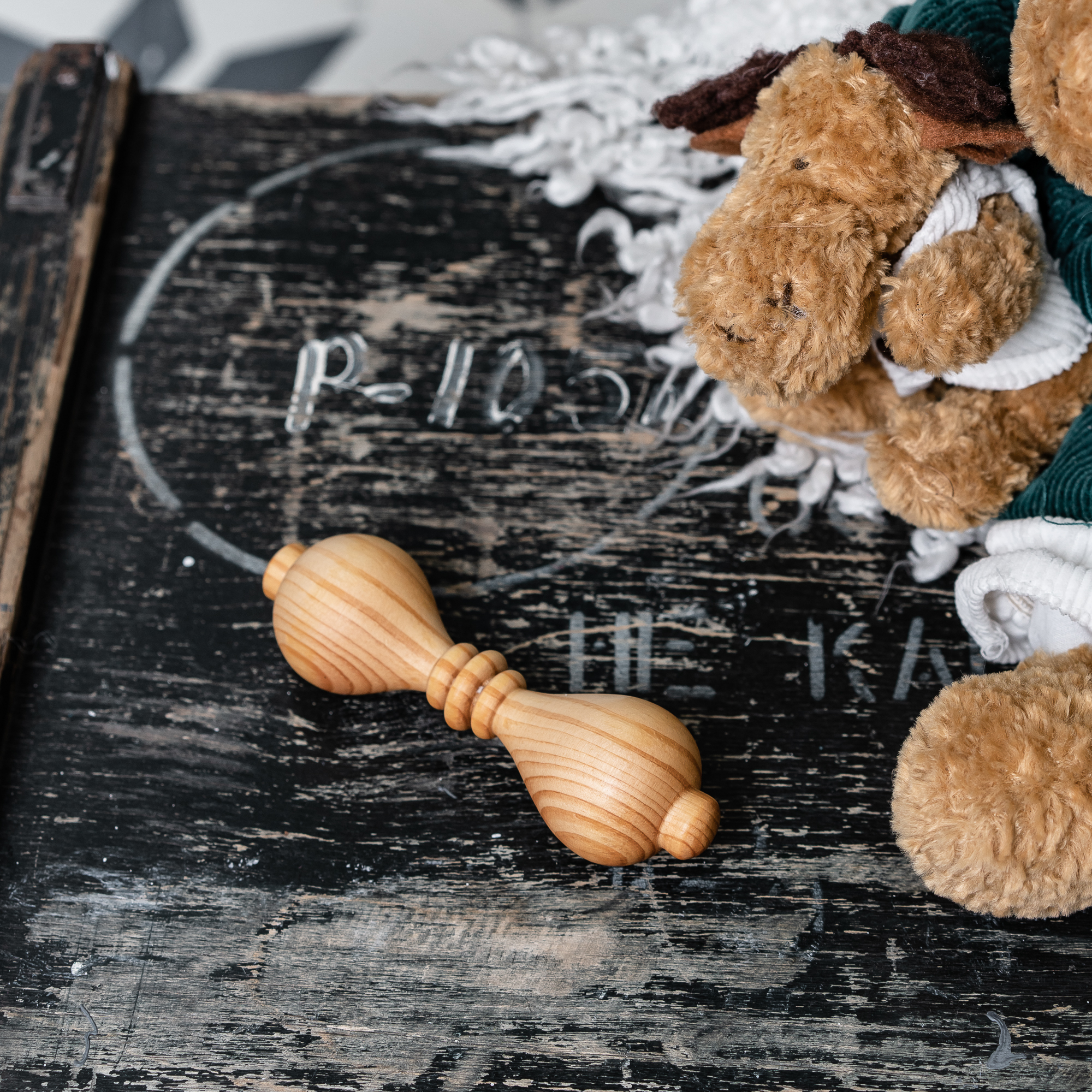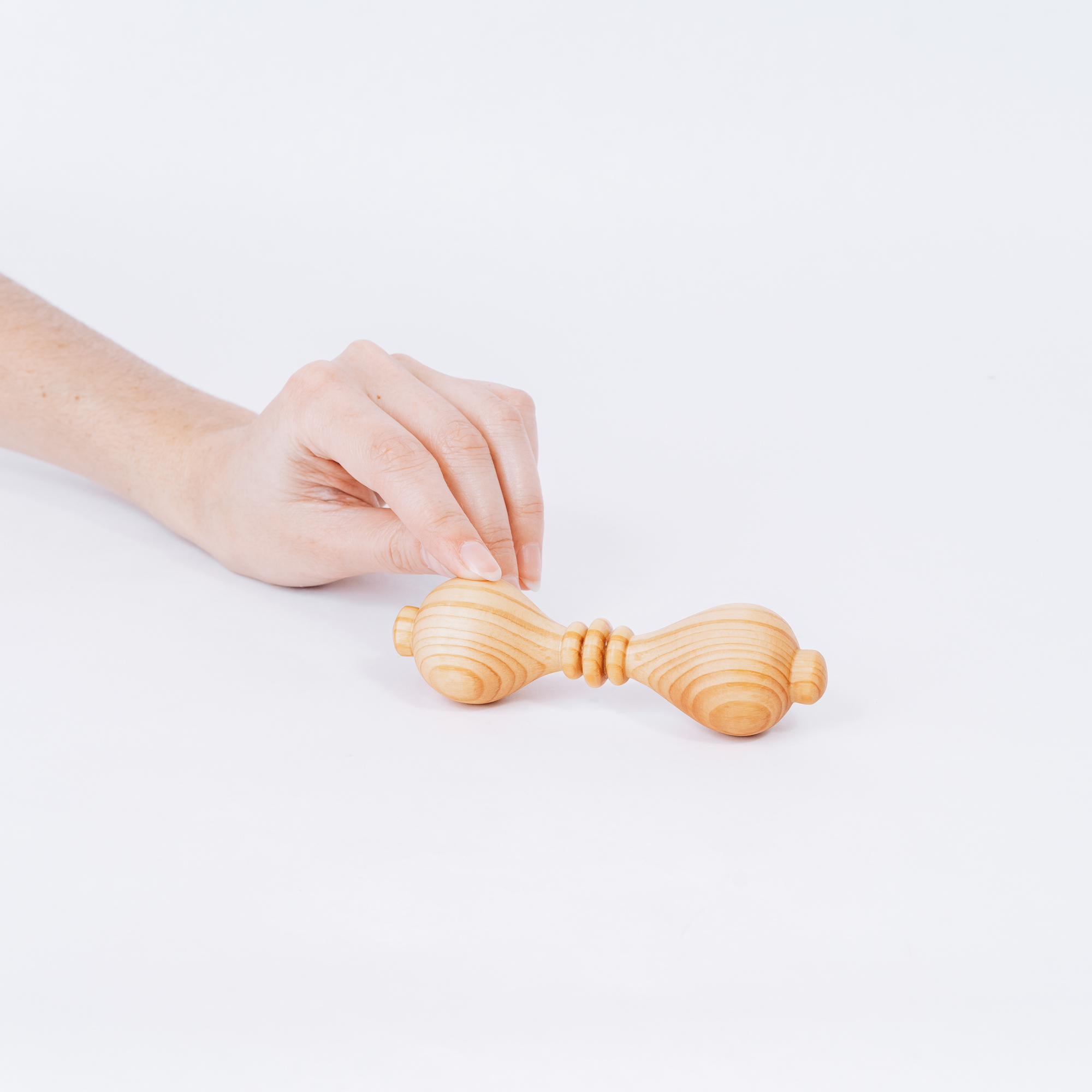 Изготовлен из цельного куска дерева, без использования клея, лака и других вредных веществ. Тщательно отполирован и отшлифован, легкий, удобно держать в маленькой ручке. Древесина кедра обладает антисептическими свойствам, а это значит, что болезнетворные микроорганизмы на поверхности игрушки размножать не будут и погибнут.