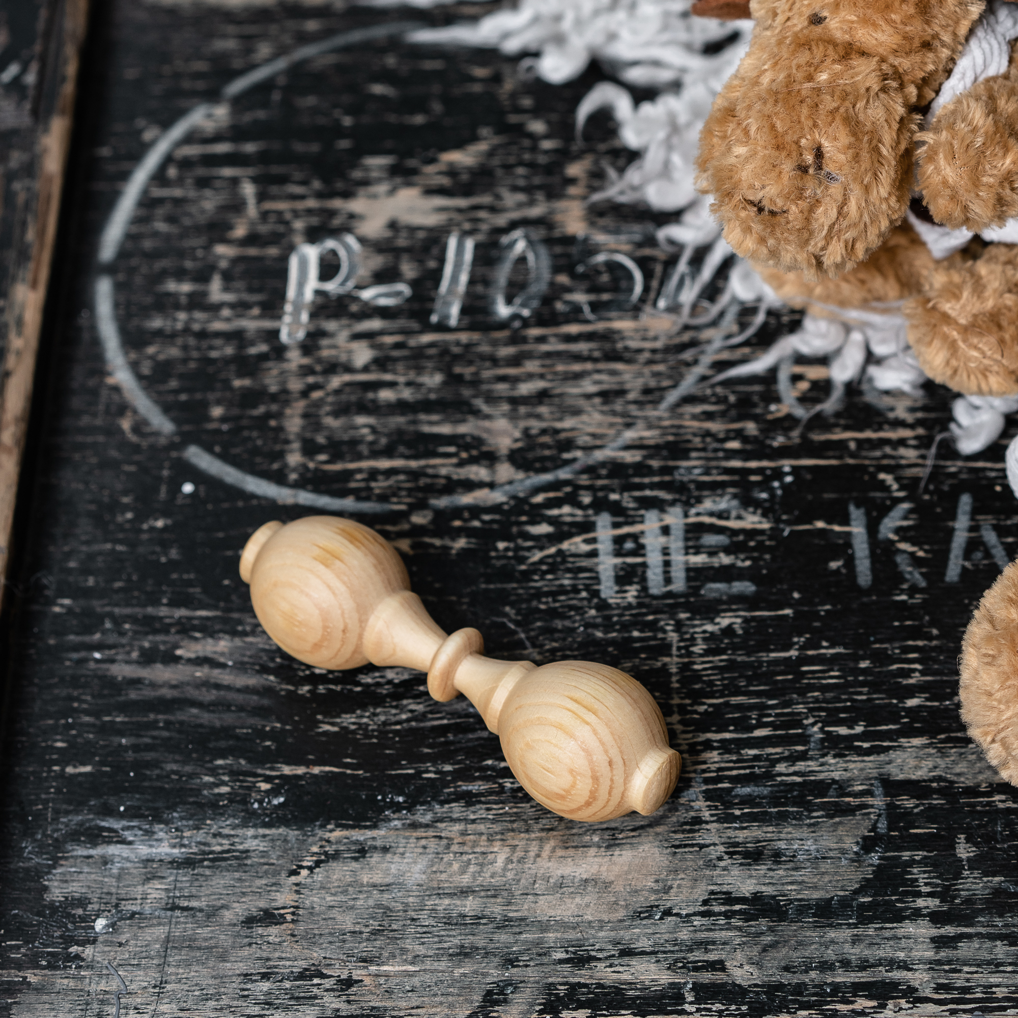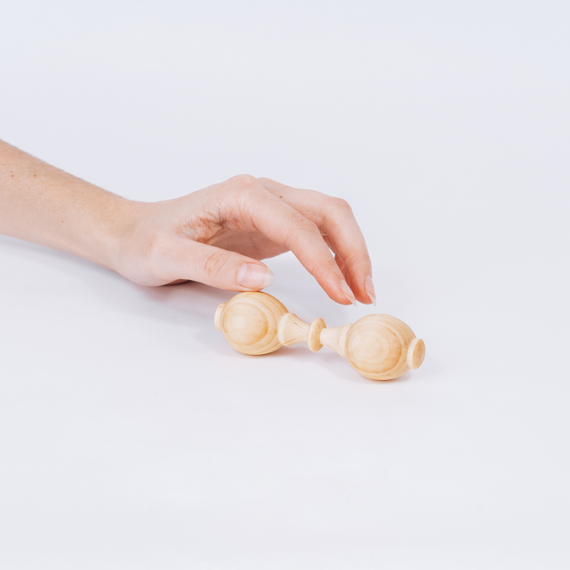Изготовлен из цельного куска дерева, без использования клея, лака и других вредных веществ. Тщательно отполирован и отшлифован, легкий, удобно держать в маленькой ручке. Древесина кедра обладает антисептическими свойствам, а это значит, что болезнетворные микроорганизмы на поверхности игрушки размножать не будут и погибнут.