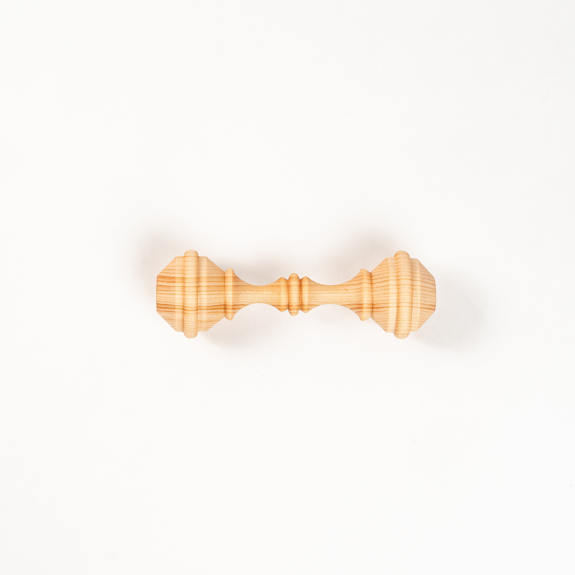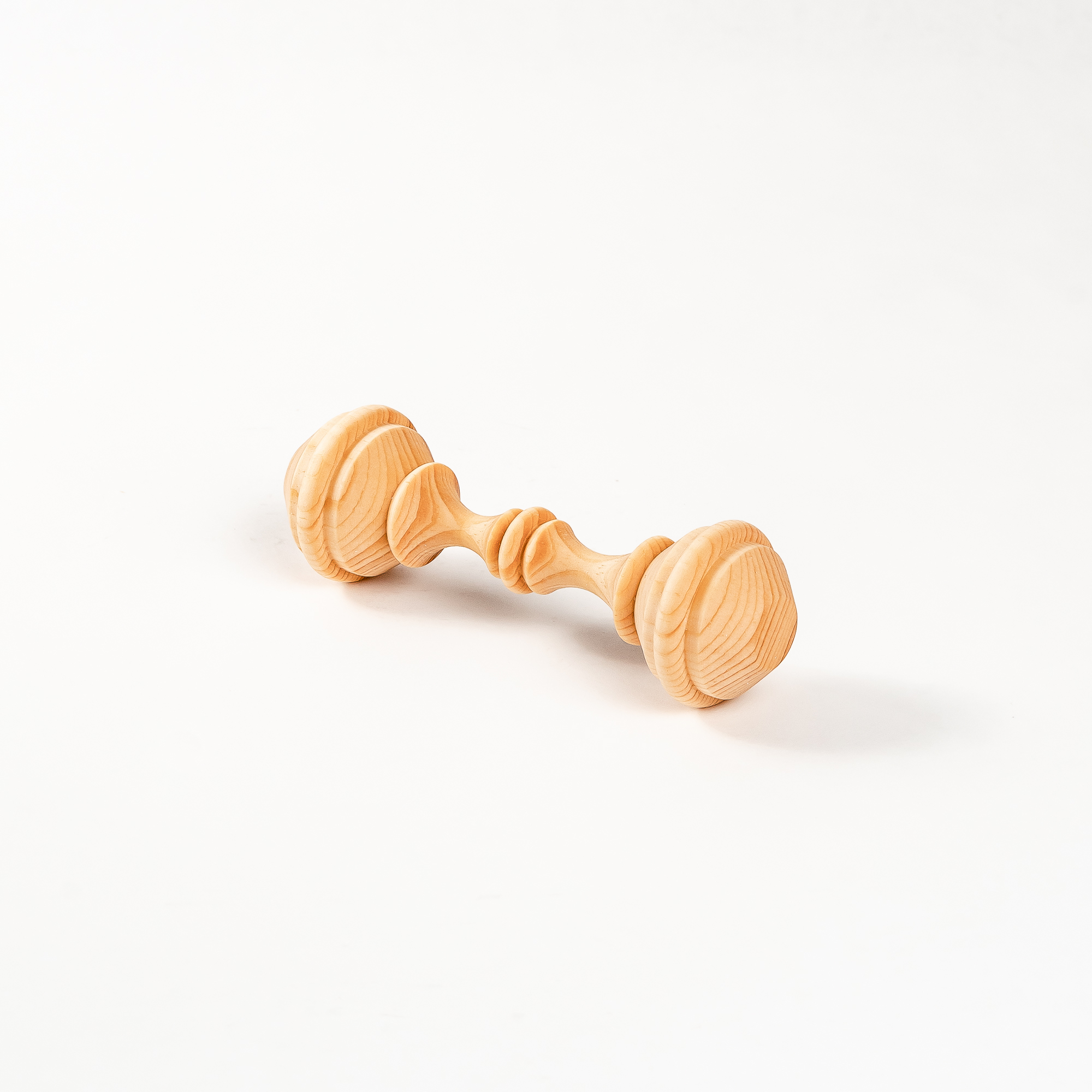 Изготовлен из цельного куска дерева, без использования клея, лака и других вредных веществ. Тщательно отполирован и отшлифован, легкий, удобно держать в маленькой ручке. Древесина кедра обладает антисептическими свойствам, а это значит, что болезнетворные микроорганизмы на поверхности игрушки размножать не будут и погибнут.