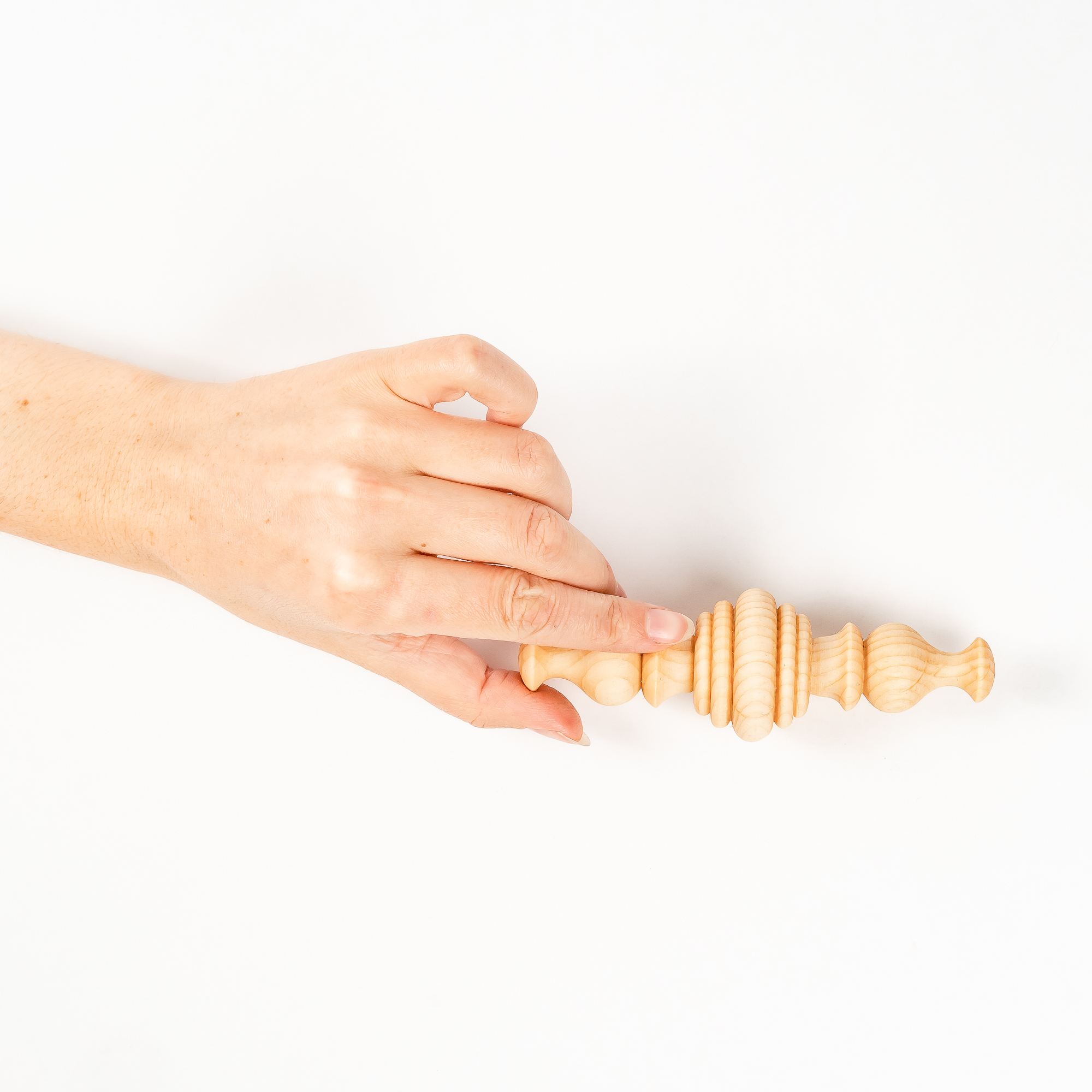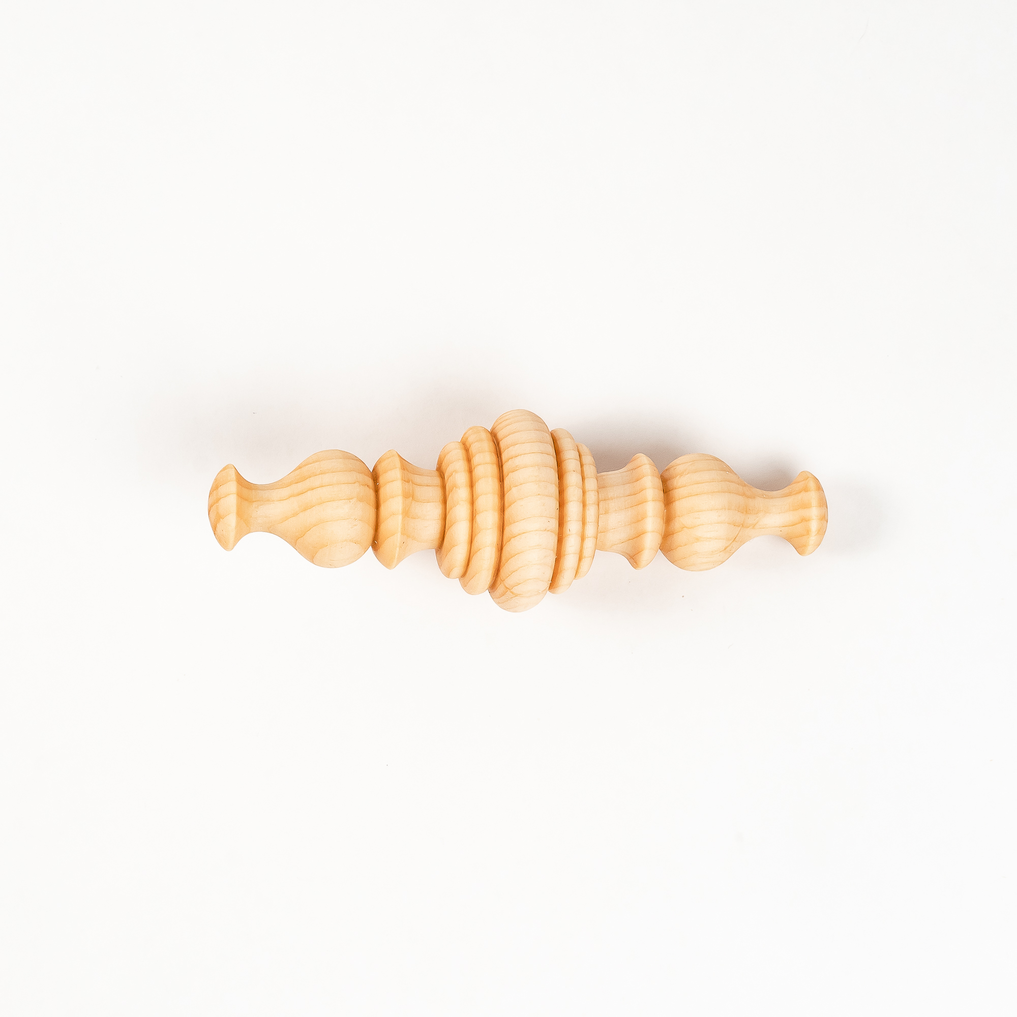 Изготовлен из цельного куска дерева, без использования клея, лака и других вредных веществ. Тщательно отполирован и отшлифован, легкий, удобно держать в маленькой ручке. Древесина кедра обладает антисептическими свойствам, а это значит, что болезнетворные микроорганизмы на поверхности игрушки размножать не будут и погибнут.