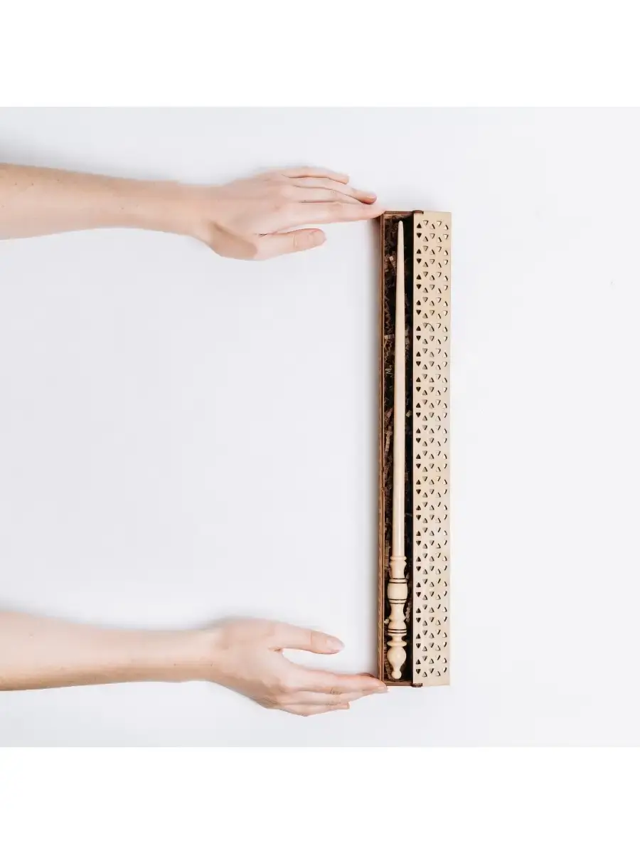 Указка для учителя из натурального дерева Сибирский кедр в подарочной упаковке. Указка - это инструмент учителя, своего рода, продолжение его руки. С помощью указки преподносится на доске, карте, плакате предмет урока. При этом демонстрационный материал хорошо виден, внимание учащихся обращается на нужный объект - все это помогает качественно усвоить знания. Указку используют и ученики во время своих ответов у доски. Несмотря на разнообразие электронных указок, классическая деревянная указка остается в приоритете, поскольку может использоваться с различными досками: обычными, магнитными, интерактивными, аудиторными. Даже на мультимедийном уроке учителю может пригодиться старая, добрая указка! Указка - своеобразная визитная карточка учителя. Она может многое сказать и о педагоге, и о предмете. Размер: указка размер: длина 400 мм., диаметр 18 мм, короб: 420х35х35мм.