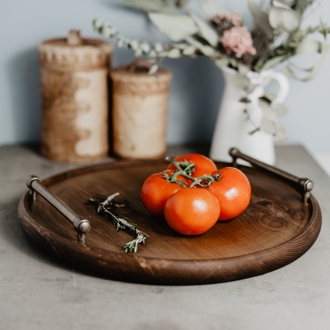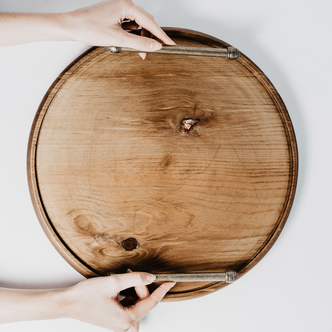 Круглый поднос для подачи блюд и сервировки стола из натурального Сибирского Кедра с удобными ручками!