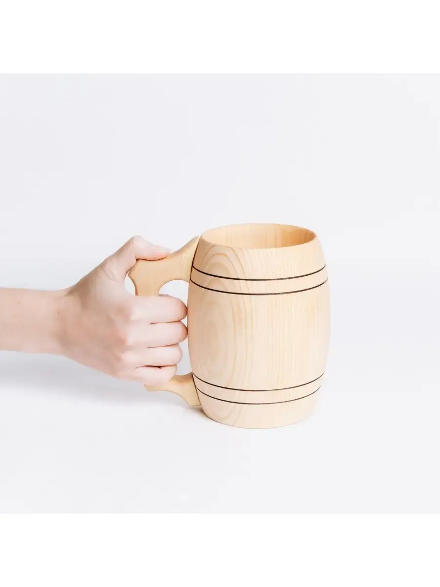 Деревянная пивная кружка из цельного куска древесины - незаменимый атрибут каждого ценителя напитка! Это уникальный подарок, который придется по вкусу каждому мужчине, особенно когда выполнен вручную и отличается стильным декором Дерево смягчает грубый вкус пива, добавляет ему структуру и сложность, напиток приобретает незабываемый аромат лесного духа. Посуда из дерева абсолютно безопасна, так как для ее изготовления используется цельный кусок древесины. Дерево не покрывается вредным для организма лаком. Специальная пропитка лишь увеличивает срок "жизни" материала. Природный материал сохраняет все вкусовые качества напитка. Более того, знатоки утверждают, что в деревянных кружках пиво приобретает утонченное и богатое послевкусие. ЦЕЛЬНЫЙ МАССИВ! НЕ КЛЕЕНЫЙ! Размер: Высота 14,5 см., диаметр горловины 9,5 см. диаметр основания 9 см, диаметр 11,5 см. Объем 500 мл.