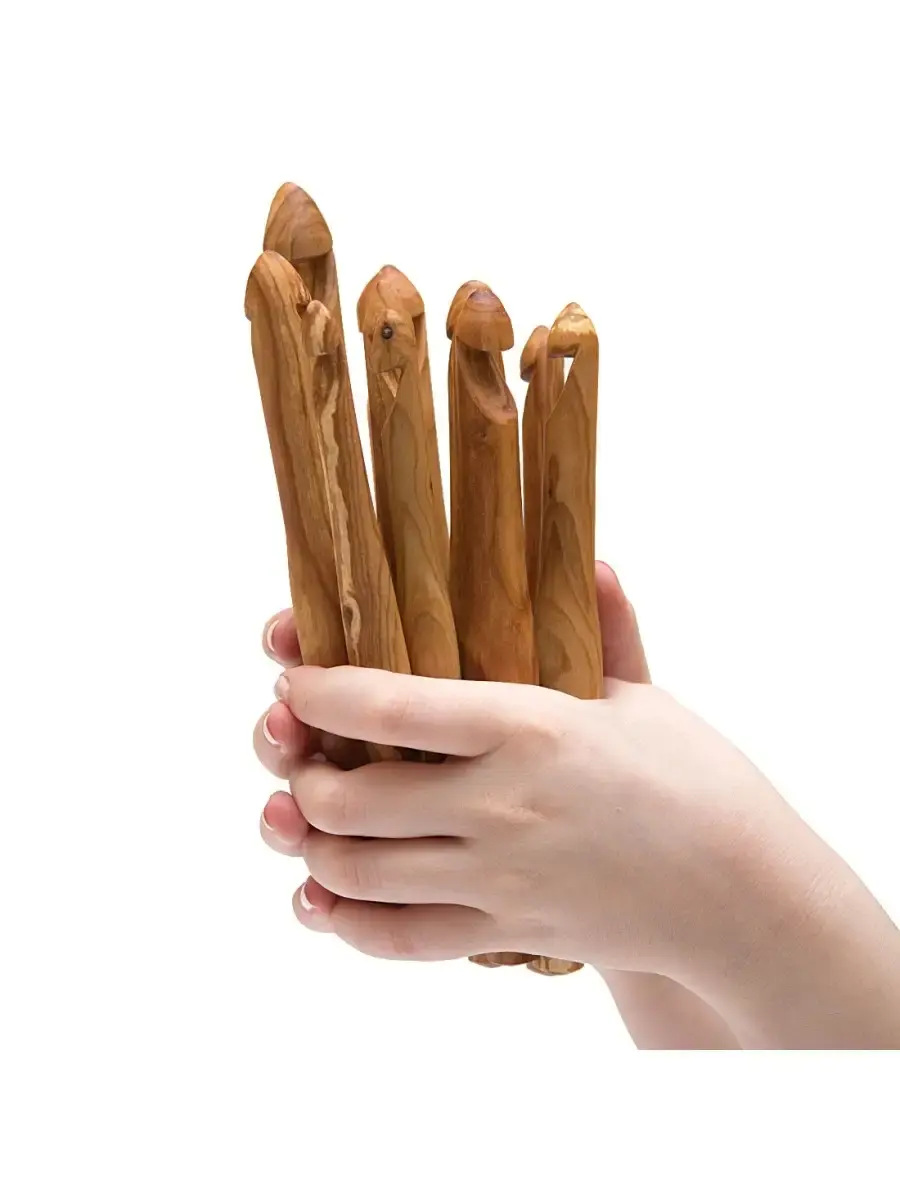 Набор деревянных крючков для вязания 10 шт (11-20 мм). Легкие, приятные на ощупь, эргономичные, тщательно отполированы! Покрыты экологически чистым пчелиным воском с льняным маслом!!! Идеальны для работы к толстой и трикотажной пряжей!!! Прекрасный подарок рукодельнице! Размер: Крючки (мм): 11, 12, 13, 14, 15, 16, 17, 18, 19, 20. длина 185-205 мм, ширина 16-25 мм.