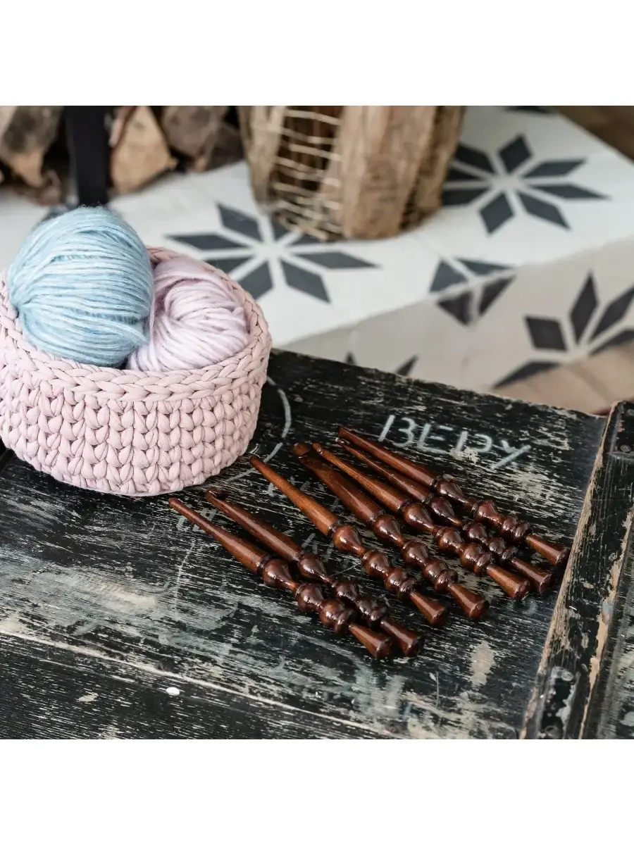 Набор деревянных крючков для вязания (7шт 4-10мм ). Легкие, приятные на ощупь, эргономичные, тщательно отполированы и покрыты лаком! Маленький русский крючок также может стать хорошим подарком для рукодельницы, как по прямому назначению, так и в виде сувенира или украшения в интерьере, а так же как деталь костюма для кукол в русском наряде. Размер: Крючки: длина 170 мм, диаметр 16 мм. 4-10 мм.