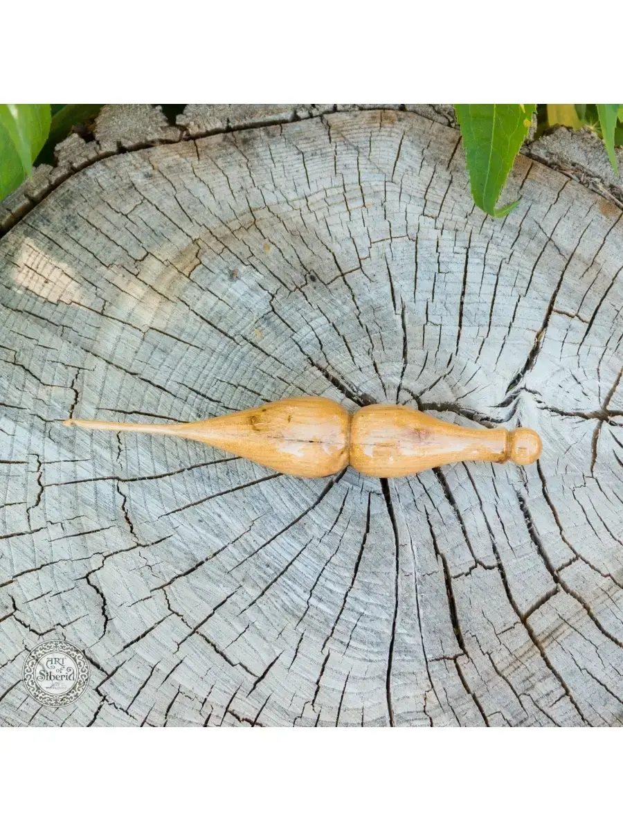 Деревянный крючок для вязания из древесины вяза 2,5 мм. Легкий, приятный на ощупь, эргономичный, тщательно отполирован и покрыт лаком! Подходит для вязания из толстой и мягкой пряжи! Маленький русский крючок также может стать хорошим подарком для рукодельницы, как по прямому назначению, так и в виде сувенира или украшения в интерьере, а так же как деталь костюма для кукол в русском наряде. Размер: 160х27 mm.