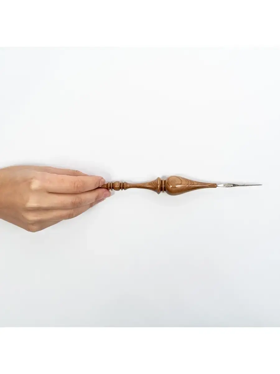 Классический железный крючок 0,8 мм. с деревянной ручкой из натуральной Сибирской Рябины. Уникальная текстура живого дерева. Ручная работа. Очень важно выбрать крючок для вязания, от этого зависит качество изделия. Неправильно подобранный крючок может испортить вещь уже в начале работы. Очень хороши для вязания деревянные крючки. Легкие, приятные на ощупь, эргономичные, их удобно держать в руке. Изготовлены из дерева сибирской рябины. Тщательно отполированы. Покрыты лаком. Сохранена уникальная текстура живого дерева. Может стать хорошим сувениром-подарком для рукодельницы, как по прямому назначению, так и в виде сувенира или украшения в интерьере, а также как деталь костюма для кукол в русском наряде. Возможно различие в рисунке текстуры дерева. Размер: общая Длинна 195 мм, максимальный диаметр 25 мм.