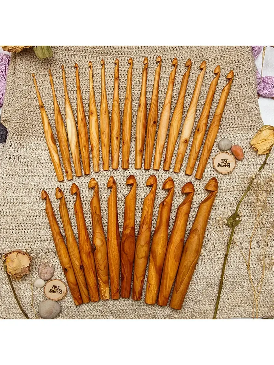 Набор деревянных крючков для вязания 25 шт (3-20 мм). Легкие, приятные на ощупь, эргономичные, тщательно отполированы! Покрыты экологически чистым пчелиным воском с льняным маслом!!! Широкий размерный ряд помогает создавать различные изделия из любой пряжи!!! Прекрасный подарок рукодельнице! Размер: Крючки (мм): 3, 3.5, 4, 4.5, 5, 5.5, 6, 6.5, 7, 7.5, 8, 8.5, 9, 9.5, 10. длина 165 мм, ширина 14 мм. 10, 11, 12, 13, 14, 15, 16, 17, 18, 19, 20. длина 185-205 мм, ширина 16-25 мм.
