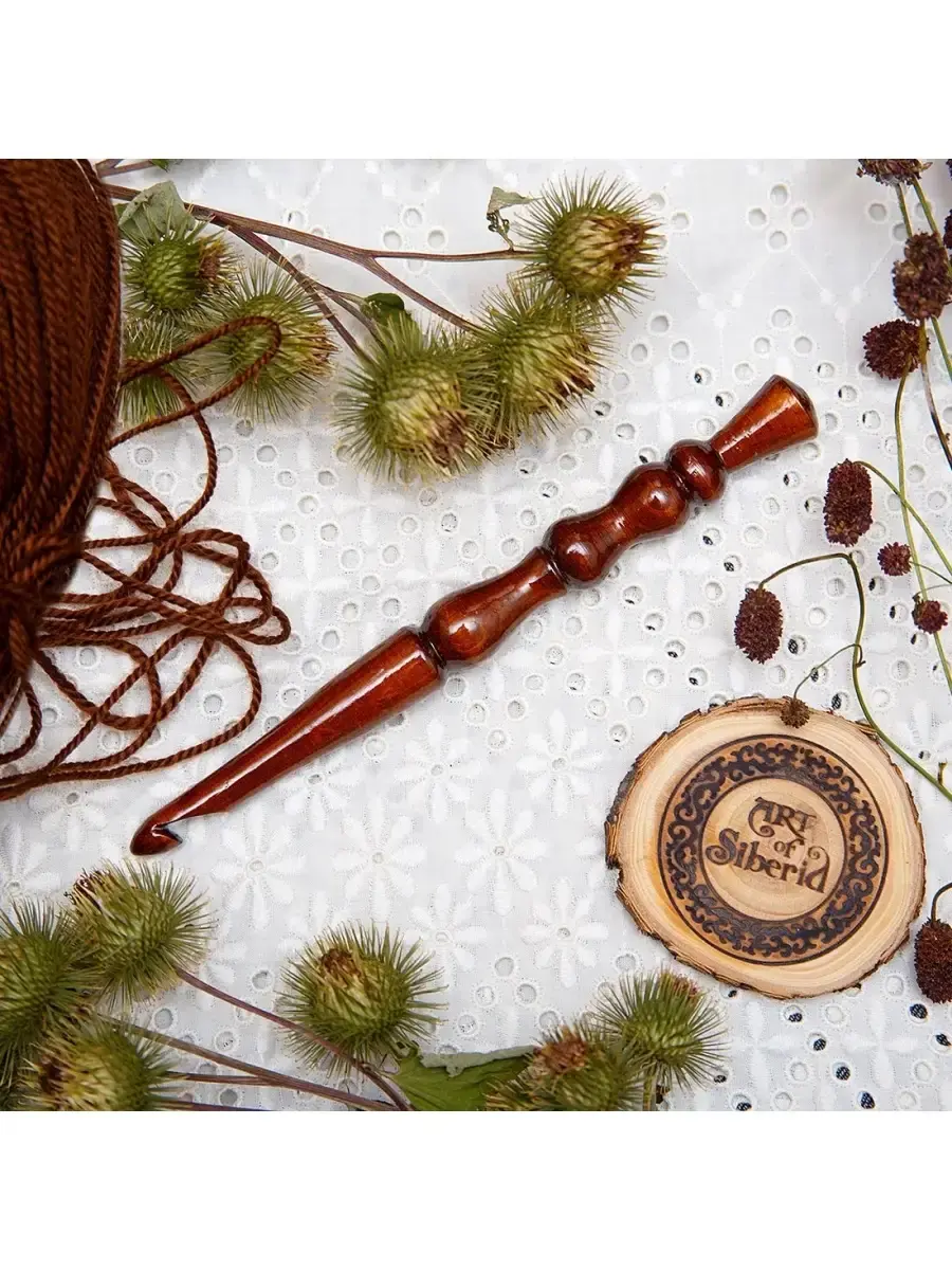 Деревянный крючок для вязания из древесины кедра 8мм. Легкий, приятный на ощупь, тщательно отполирован и покрыт лаком! Подходит для вязания из толстой и мягкой пряжи. Маленький русский крючок также может стать хорошим сувениром-подарком для рукодельницы, как по прямому назначению, так и в виде сувенира или украшения в интерьере, а так же как деталь костюма для кукол в русском наряде. Размер: 170х16 мм.