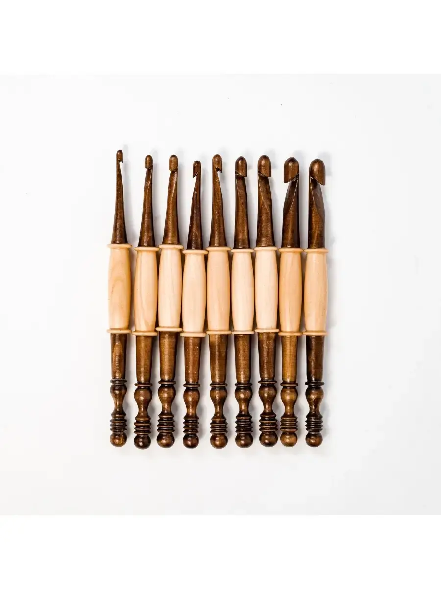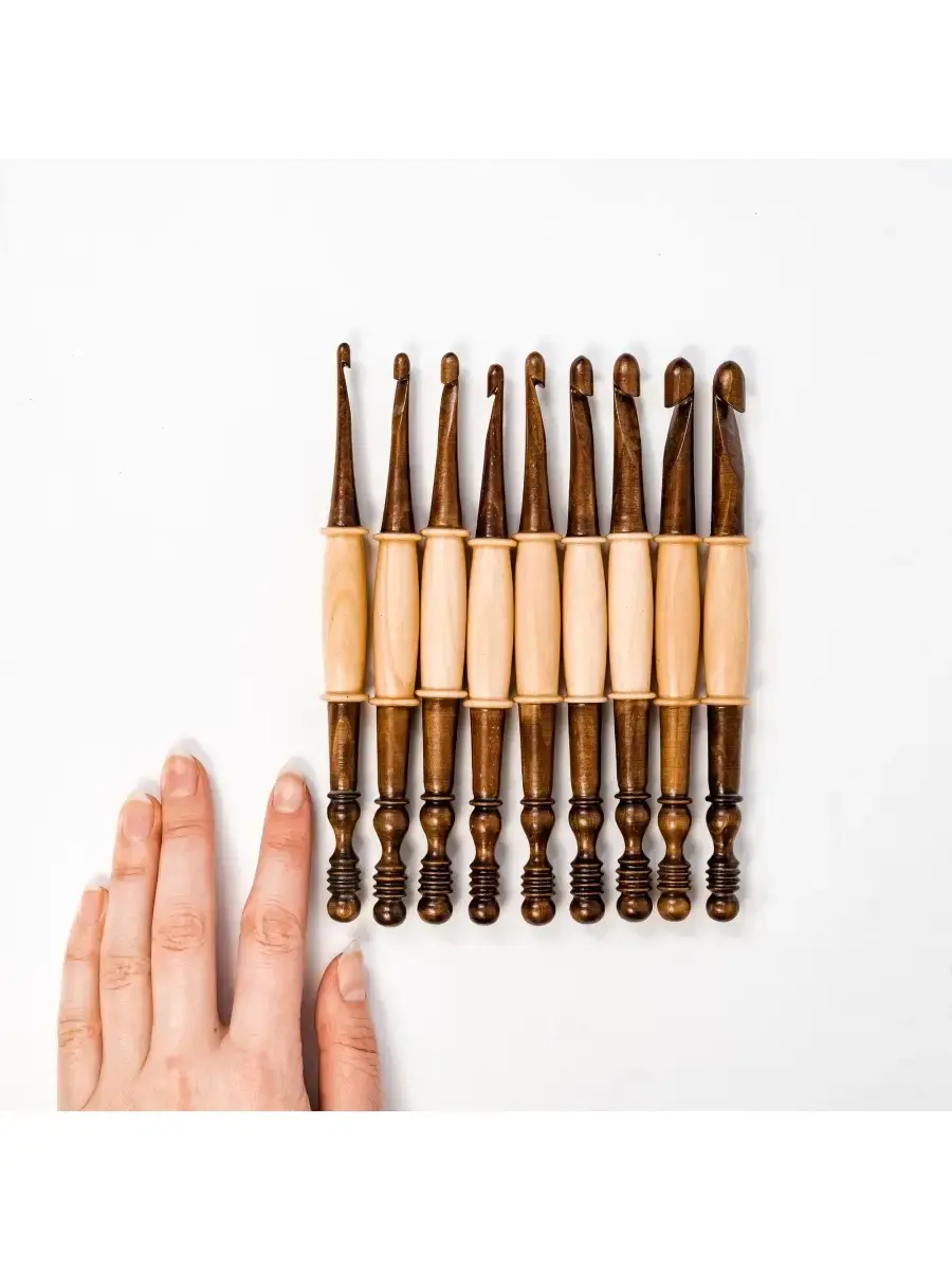 Набор деревянных крючков для вязания из кедра 9 шт. (4-10 мм.) Очень важно выбрать крючок для вязания, от этого зависит качество изделия. Неправильно подобранный крючок может испортить вещь уже в начале работы. Очень хороши для вязания деревянные крючки. Легкие, приятные на ощупь, эргономичные, их удобно держать в руке. Широкий размерный ряд поможет создавать различные изделия из любой пряжи! Станут вам незаменимым помощником. Ведь Вязание крючком - увлекательное занятие, которое помогает отвлечься и расслабиться после тяжёлого трудового дня! Размер: Крючки (мм): 4, 4.5, 5, 5.5, 6, 7, 8, 9, 10 Длина крючка 170 мм., диаметр 15 мм.,.