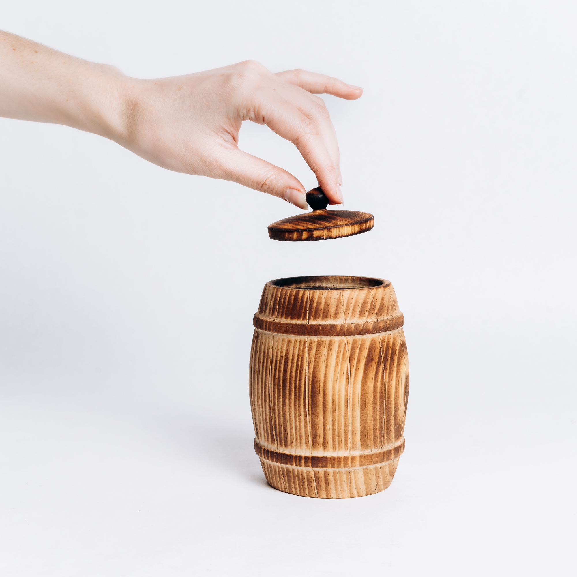 Маленькая кубышка в виде бочонка из массива натурального сибирского Кедра. Для соли, специй, меда или других пищевых продуктов. Снаружи и внутри пропитана горячим растительным маслом с пчелиным воском.