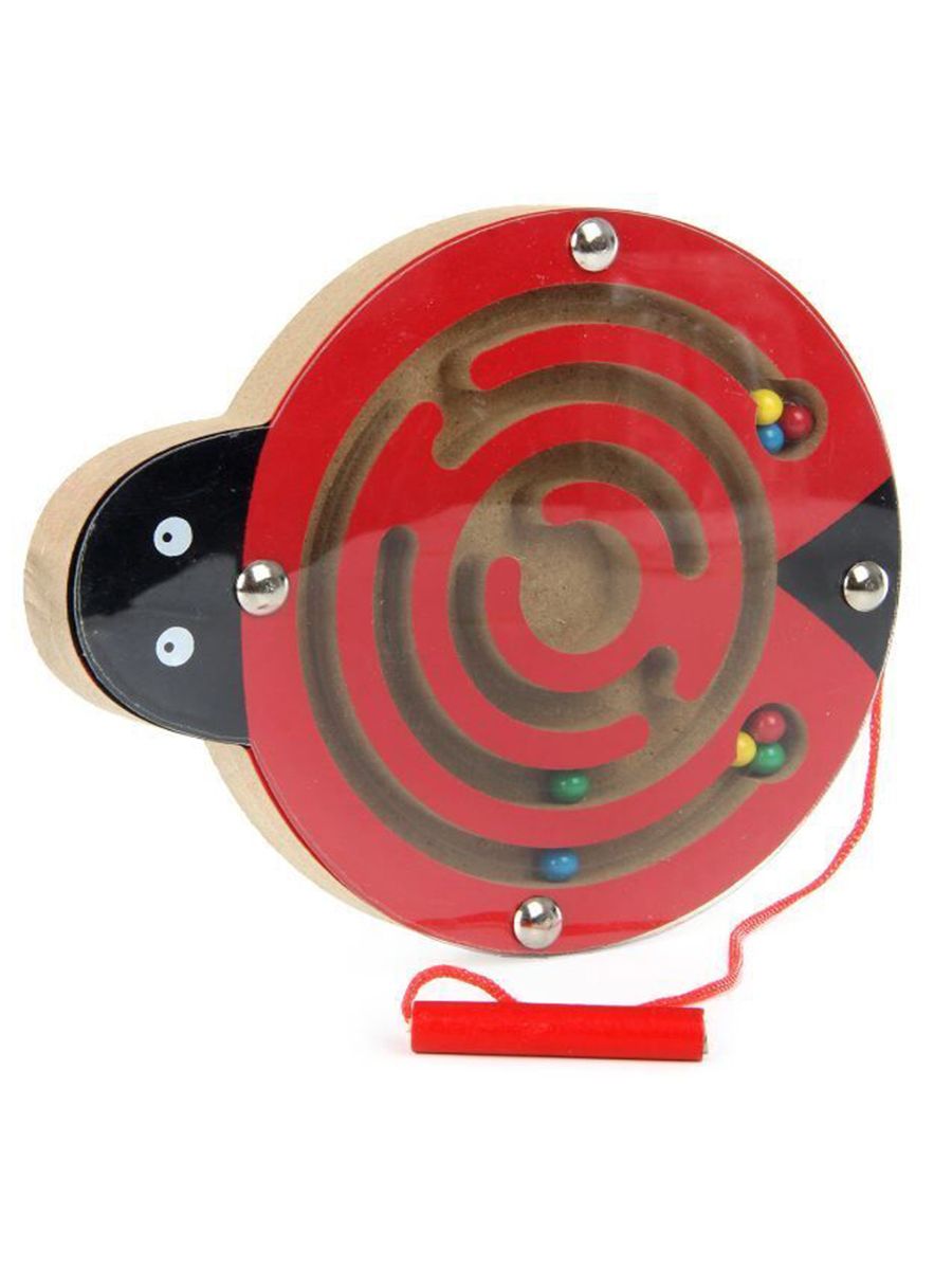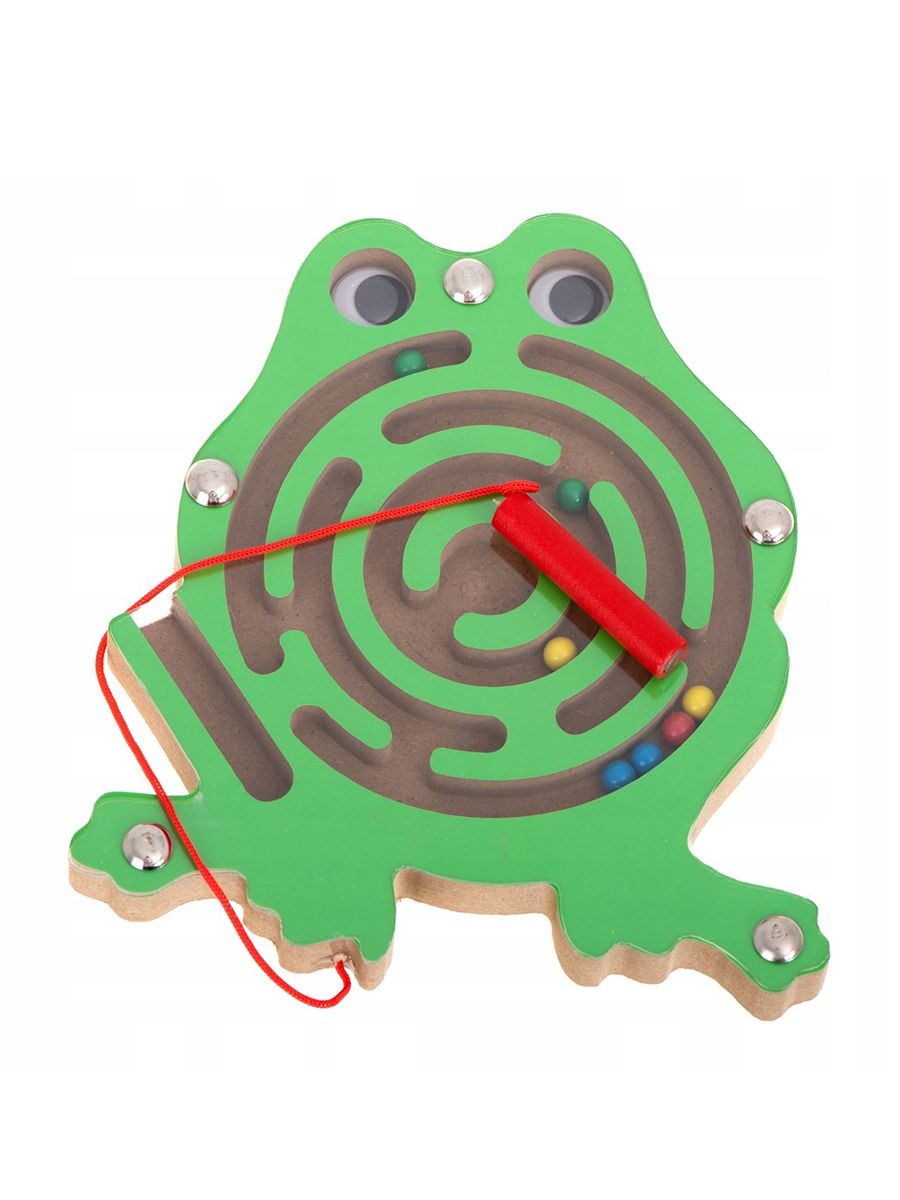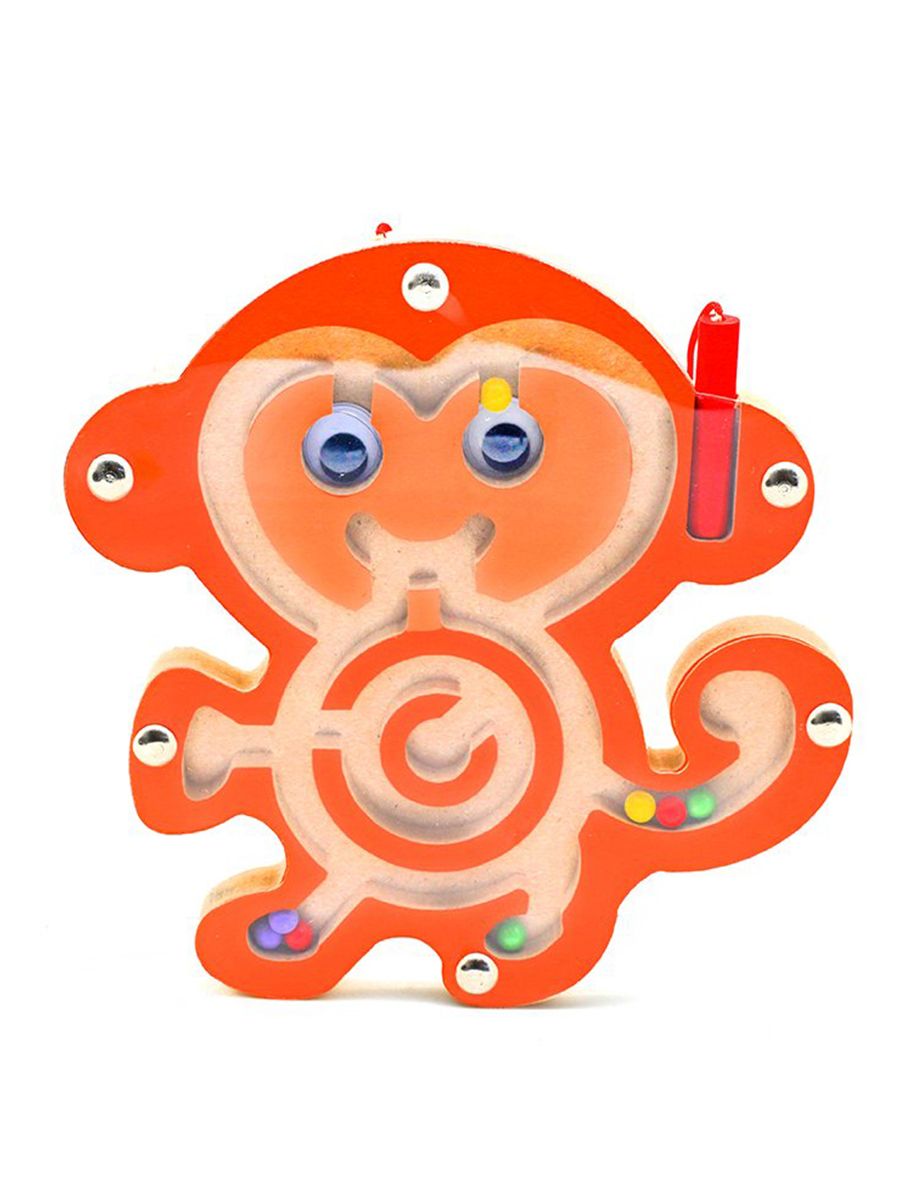 Деревянная игрушка очень полезна для раннего развития малыша! Она легка и компактна, выполнена в форме милых животных, внутри которых спрятался лабиринт. По лабиринту катаются разноцветные металлические шарики, которые можно передвигать с помощью палочки с магнитиком на конце. Все детали игрушки очень качественно обработаны, не имеют острых углов, сколов и зазубрин. Лабиринт идеально подойдёт для игры с самыми маленькими детишками в любом месте - дома, в гостях, в садике или в дороге. С такой игрушкой малыш будет развивать логическое мышление, мелкую моторику ручек, координацию движений, внимание и усидчивость, познакомится с цветами и формами! Игрушка изготовлена из экологически чистого дерева, есть элементы магнита. В наличии три вида: лягушка (14х15х1,5 см), божья коробка (15х12,5х1,5 см) и обезьянка (15х14,5х1,5 см). Товары отправляются случайным образом.
