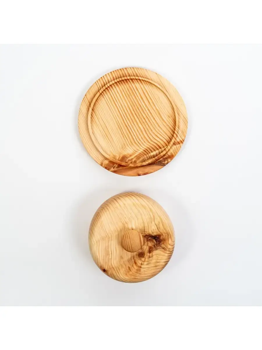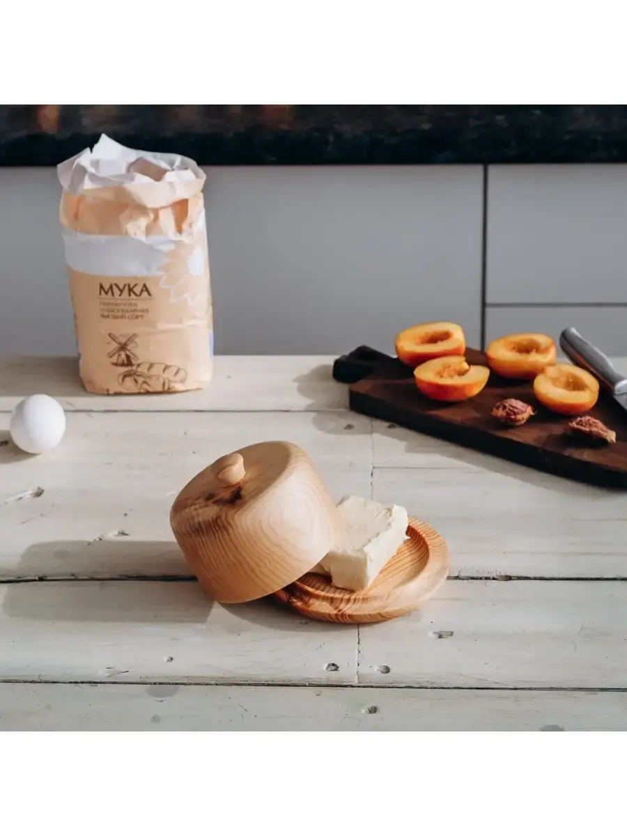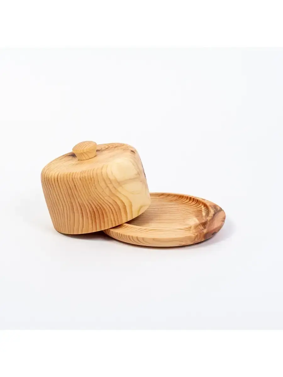 Масленка из дерева - это идеальный вариант для хранения масла. Она сохраняет свежесть содержимого, продукт дольше не покрывается плесенью. Дубильные вещества, которыми богата древесина обогащают вкус и аромат пищи, также дерево обладает природными антисептическими свойствами, которые улучшают качество еды, дополнительно "обеззараживая" ее. Экологична, практична, имеет красивый внешний вид. Маленькие бортики обеспечивают фиксацию крышки, не давая ей соскальзывать, и помогают плотно прилегать к тарелочке, чтобы масло не впитало посторонние запахи. А удобная ручка легко позволяет взяться за нее и открыть масленку. Ни капли клея! Цельный кусок древесины. Покрыт составом из растительного масла, пчелиного воска и смолы кедра.