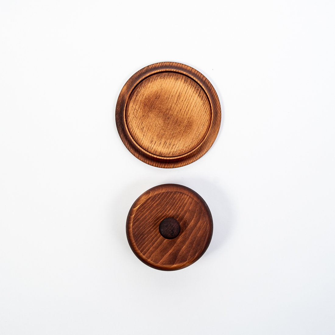 На фото – масленка из дерева сибирского кедра. Экологична, практична, имеет красивый внешний вид. Маленькие бортики обеспечивают фиксацию крышки, не давая ей соскальзывать, и помогают плотно прилегать к тарелочке, чтобы масло не впитало посторонние запахи. А удобная ручка легко позволяет взяться за нее и открыть масленку.