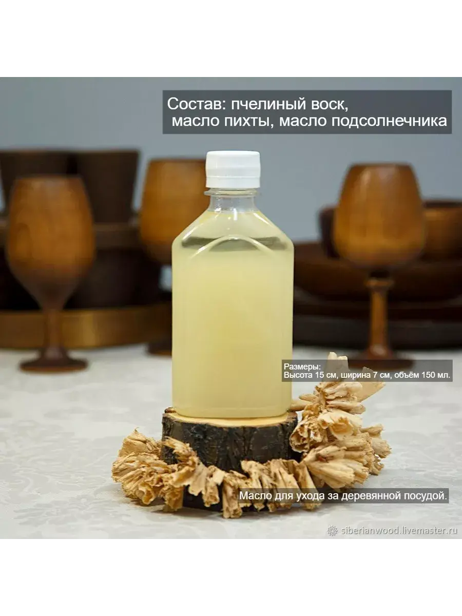 Масло натуральное для ухода за деревянной посудой. Предназначено для обработки и защиты предметов из натуральной древесины. Рекомендуется обрабатывать посуду из дерева 1 раз в месяц. Перед обработкой помойте и просушите изделие. Затем добавьте на изделие небольшое количество масла и протрите его со всех сторон. Через несколько часов после покрытия масло подсохнет, закроет поры древесины и не даст изделию впитывать воду. Состав : растительное масло, воск пчелиный,