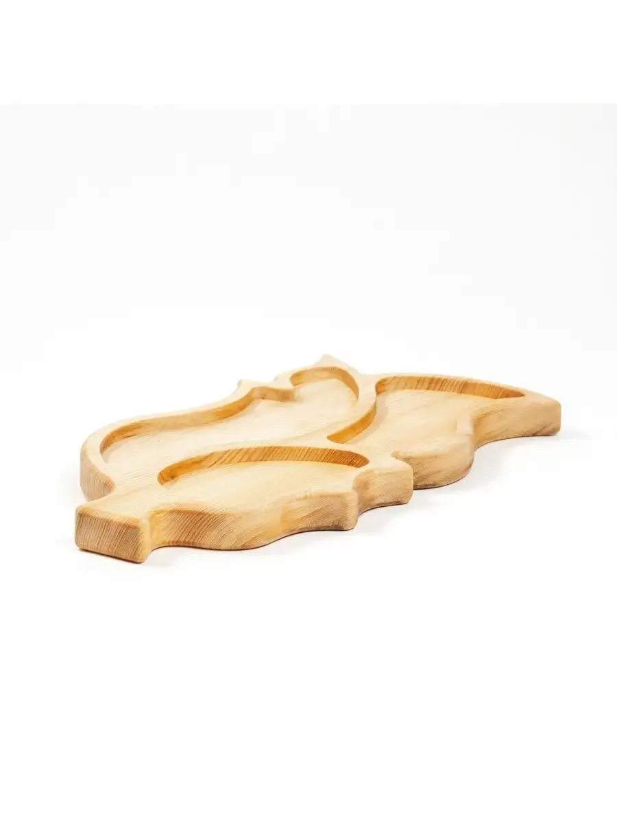 Деревянная менажница из кедра для подачи блюд и закусок "лист". Любителям натуральности придется по душе наша деревянная менажница, имеющая такие плюсы, как красивый узор древесины, не бьется, натуральна, долговечна и подходит для различных блюд. А антибактериальные свойства кедра привлекают ценителей чистоты. Если застолье более серьезное, вас также выручит она, наполненная салатами, свежими и маринованными овощами и грибами. Даже обычные домашние заготовки в такой емкости будут выглядеть как дорогое блюдо из ресторана. Кроме того, вы сможете сэкономить место на столе.Размер: 35х20х2,2 см.