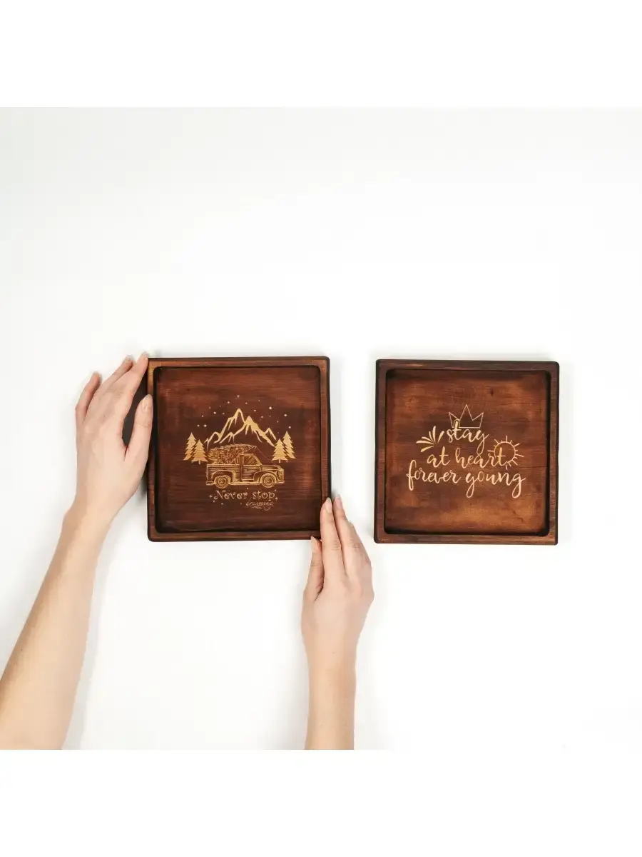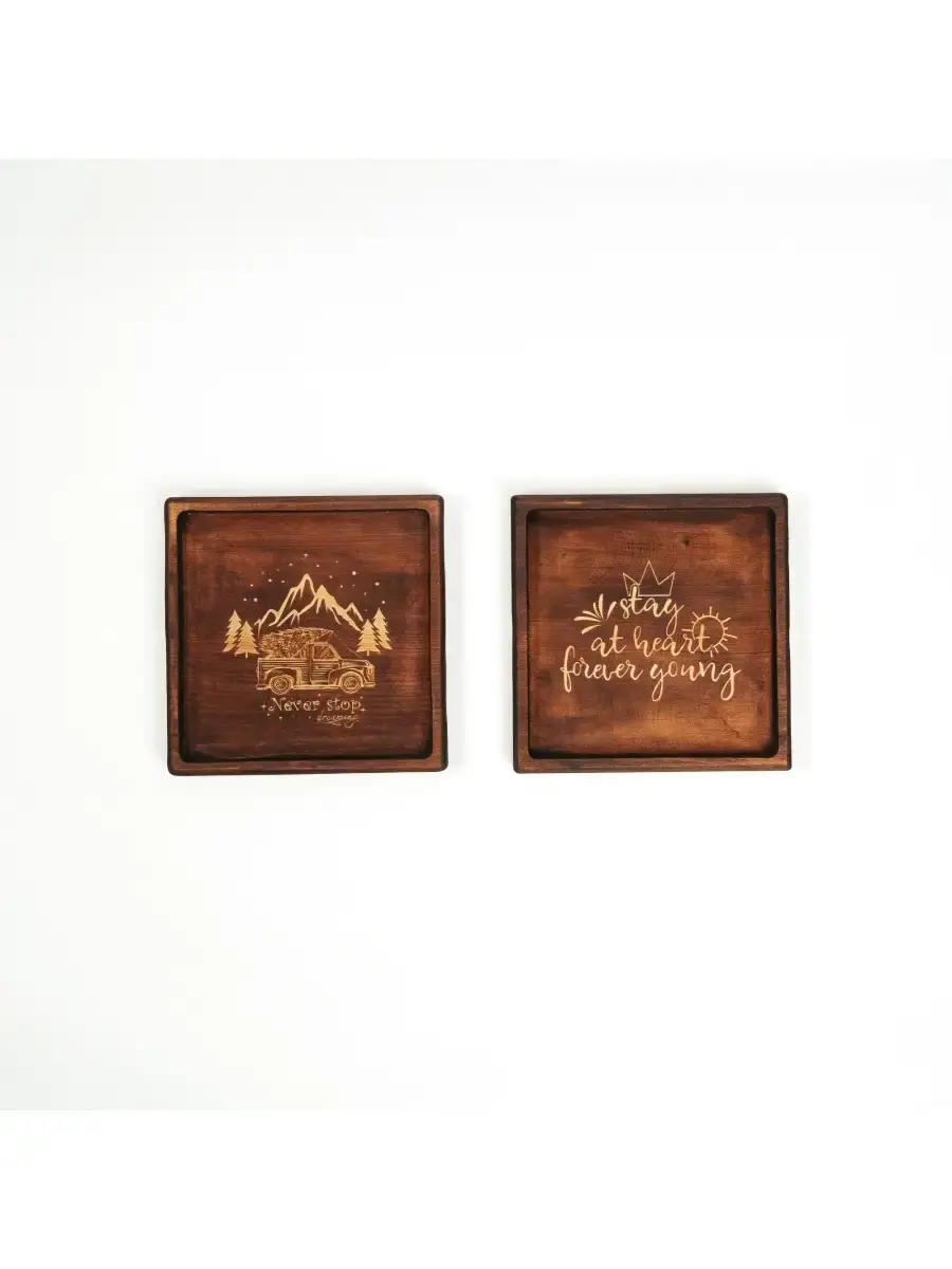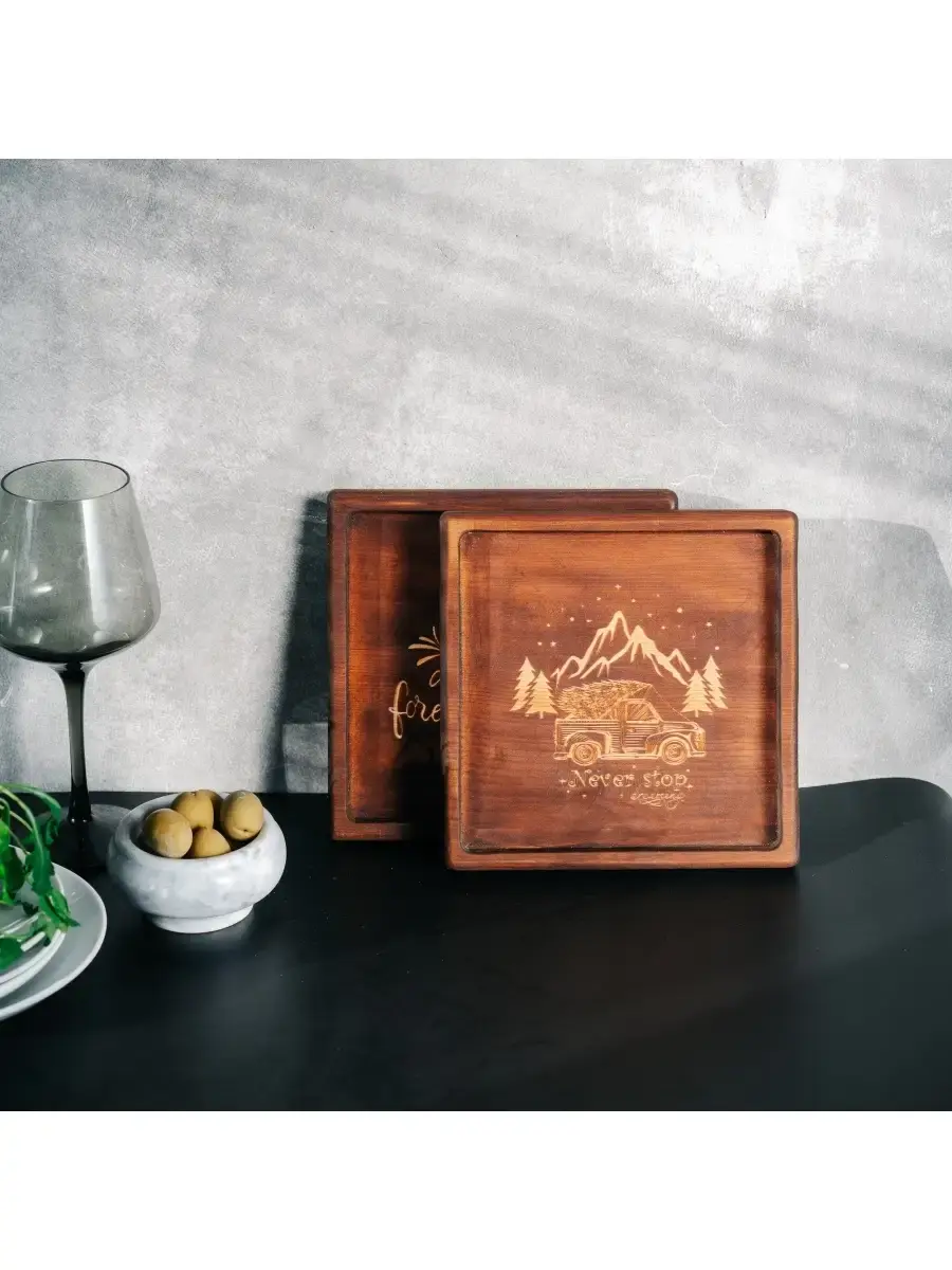 Набор деревянных менажниц из кедра для подачи блюд и закусок с гравировкой. Любителям натуральности придется по душе наша деревянная менажница, имеющая такие плюсы, как красивый узор древесины, не бьется, натуральна, долговечна и подходит для различных блюд. А антибактериальные свойства кедра привлекают ценителей чистоты. Если застолье более серьезное, вас выручит она, наполненная салатами, свежими и маринованными овощами и грибами. Даже обычные домашние заготовки в такой емкости будут выглядеть как дорогое блюдо из ресторана. Кроме того, вы сможете сэкономить место на столе. Возможно наличие сучков. Пропитана нашим составом на основе растительного масла, кедровой смолы и пчелиного воска. Размер: 19х19х2,2 см. 2 шт.