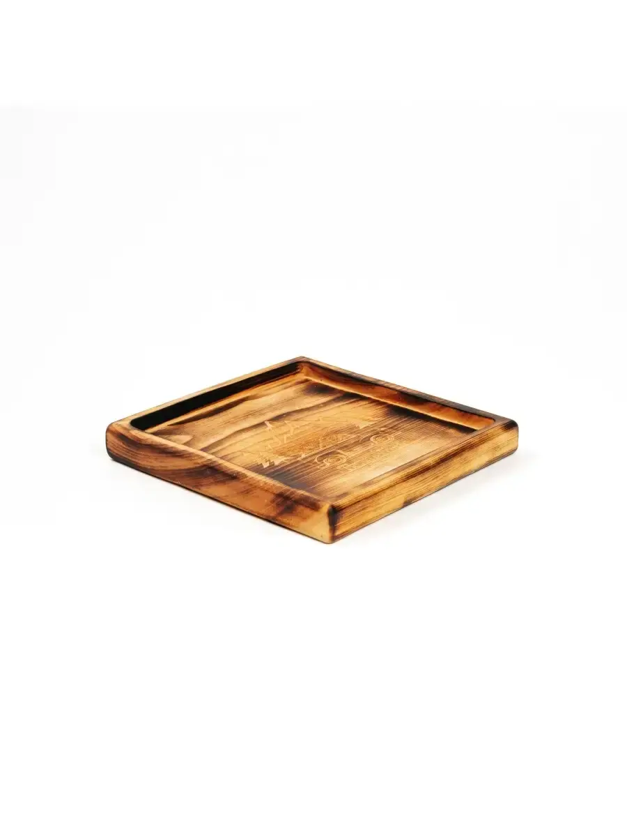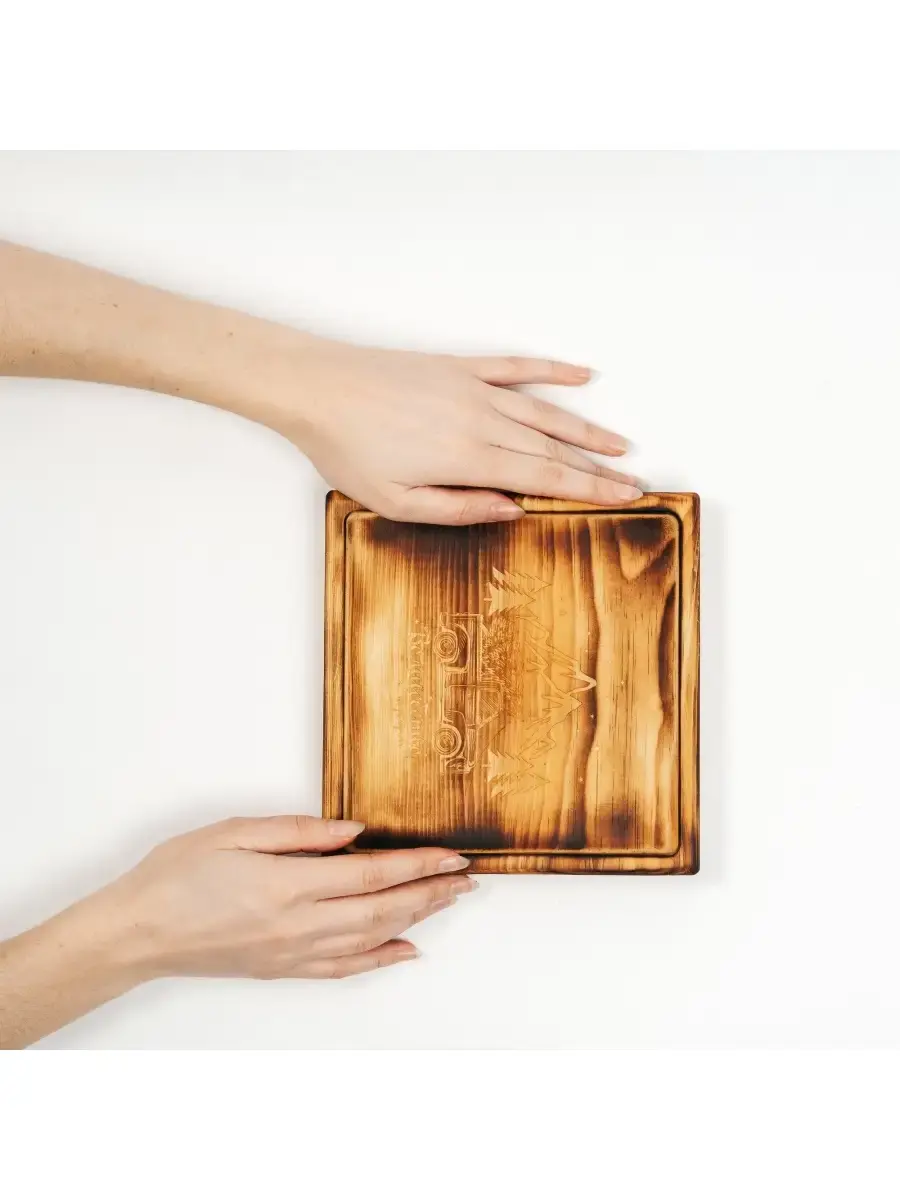 Деревянная менажница из кедра для подачи блюд и закусок с гравировкой "Волшебство не за горами". Представлено в двух вариантах: обжиг и цвет "орех". Любителям натуральности придется по душе наша деревянная менажница, имеющая такие плюсы, как красивый узор древесины, не бьется, натуральна, долговечна и подходит для различных блюд. А антибактериальные свойства кедра привлекают ценителей чистоты. Возможно наличие сучков. Пропитана нашим составом на основе растительного масла, кедровой смолы и пчелиного воска. Размер: 19х19х2,2 см.