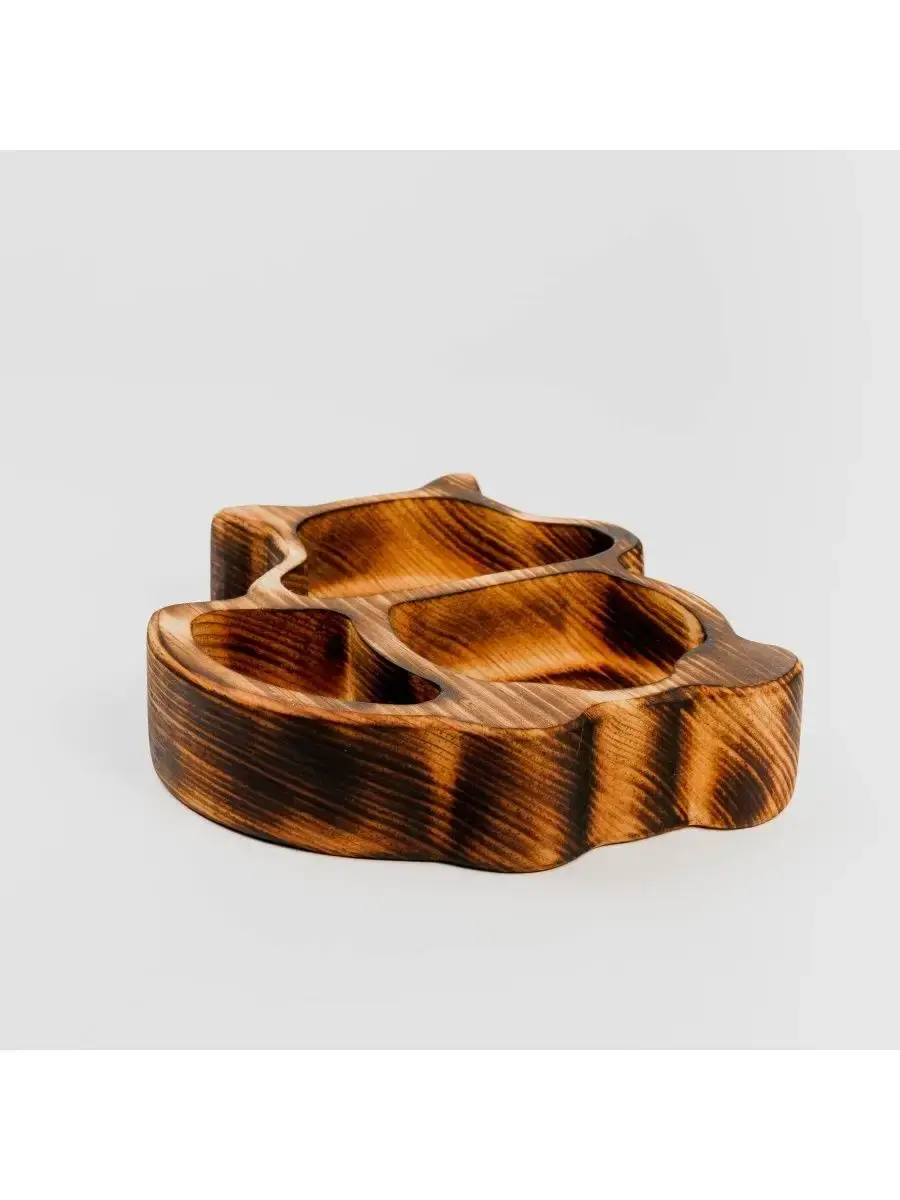Менажница "белочка" из Сибирского кедра ручной работы для кухни. Многие хозяйки мечтают, чтобы ее семейный обед или праздничный ужин был таким, как в престижном дорогом ресторане, поэтому озадачиваются сервировкой и красивой подачей блюд. В этом случае можно воспользоваться нашей новинкой - менажница для подачи блюд!Так что же такое менажница?Слово французского происхождения, от melanger – «смешивать», то есть в буквальном смысле менажница – это тарелка, на которой смешаны разные блюда.Наша экологичная посуда из дерева придется всем по душе. Деревянная менажница для сервировки обладает следующими преимуществами: красивый узор древесины, очень прочная, натуральная, долговечна и подходит для различных блюд. А антибактериальные свойства Сибирского кедра привлекают ценителей чистоты. Менажница из дерева станет отличным подарком на Новый год, день рождения и новоселье.Менажница подходит для горячих и холодных блюд, для закусок и для фруктов. Возможно наличие сучков. Идеальная шлифовка позволяет изделию быть очень гладким. Менажница пропитана натуральным маслом, которое, необходимо смыть в теплой проточной воде перед использованием. Размеры менажницы: Длина 210 мм, Ширина 180 мм, Высота 45 мм, Вес 305 грамм.