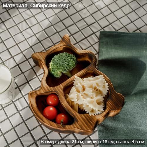 Наша экологичная посуда из дерева придется всем по душе. Деревянная менажница для сервировки обладает следующими преимуществами: красивый узор древесины, очень прочная, натуральная, долговечна и подходит для различных блюд. А антибактериальные свойства Сибирского кедра привлекают ценителей чистоты.