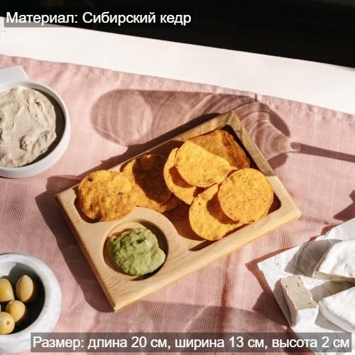 Любителям натуральности придется по душе наша деревянная менажница, имеющая такие плюсы, как красивый узор древесины, не бьется, натуральна, долговечна и подходит для различных блюд. А антибактериальные свойства кедра привлекают ценителей чистоты.