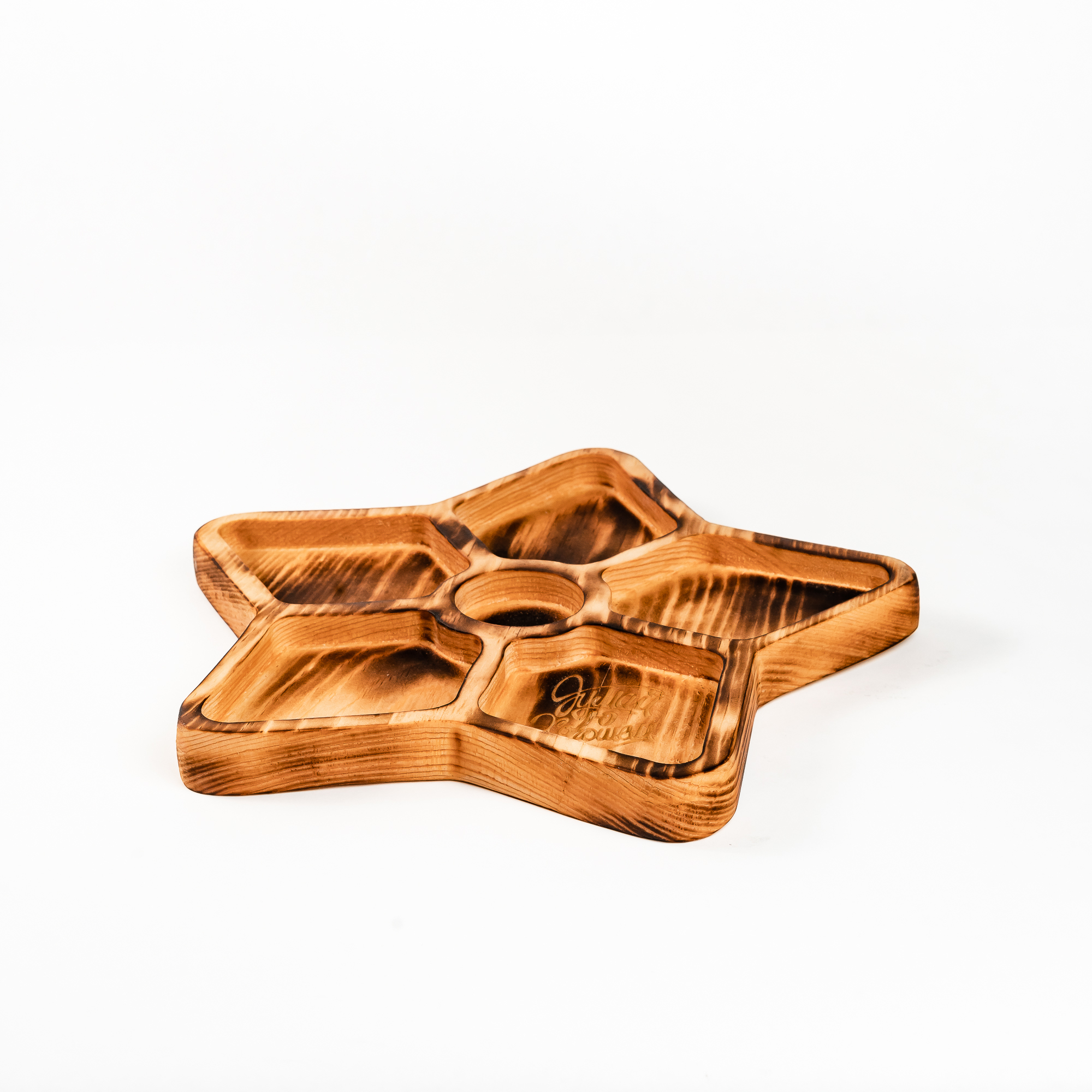Деревянная менажница из кедра для подачи блюд и закусок с гравировкой "ДУМАЙ О ХОРОШЕМ". Любителям натуральности придется по душе наша деревянная менажница, имеющая такие плюсы, как красивый узор древесины, не бьется, натуральна, долговечна и подходит для различных блюд. А антибактериальные свойства кедра привлекают ценителей чистоты. Подходит для любых видов закусок: от мясной нарезки до конфет! Пропитана нашим составом на основе растительного масла, кедровой смолы и пчелиного воска. Перед использованием обязательно промыть теплой проточной водой, чтоб смыть остатки масла и морилки. Изделие может стать чуть светлее. Первое время возможно оставление следов от морилки, поэтому лучше для протирания использовать бумажные полотенца.