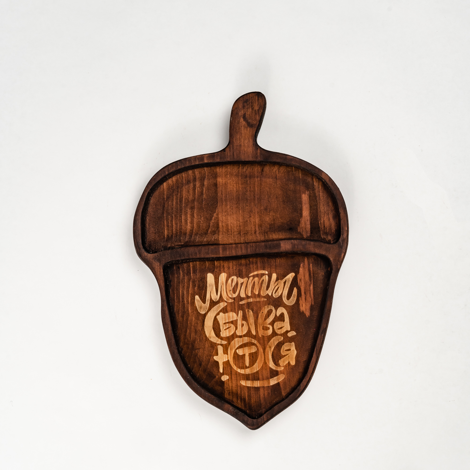 Менажница деревянная из сибирского кедра для подачи блюд и закусок с гравировкой "МЕЧТЫ СБЫВАЮТСЯ".