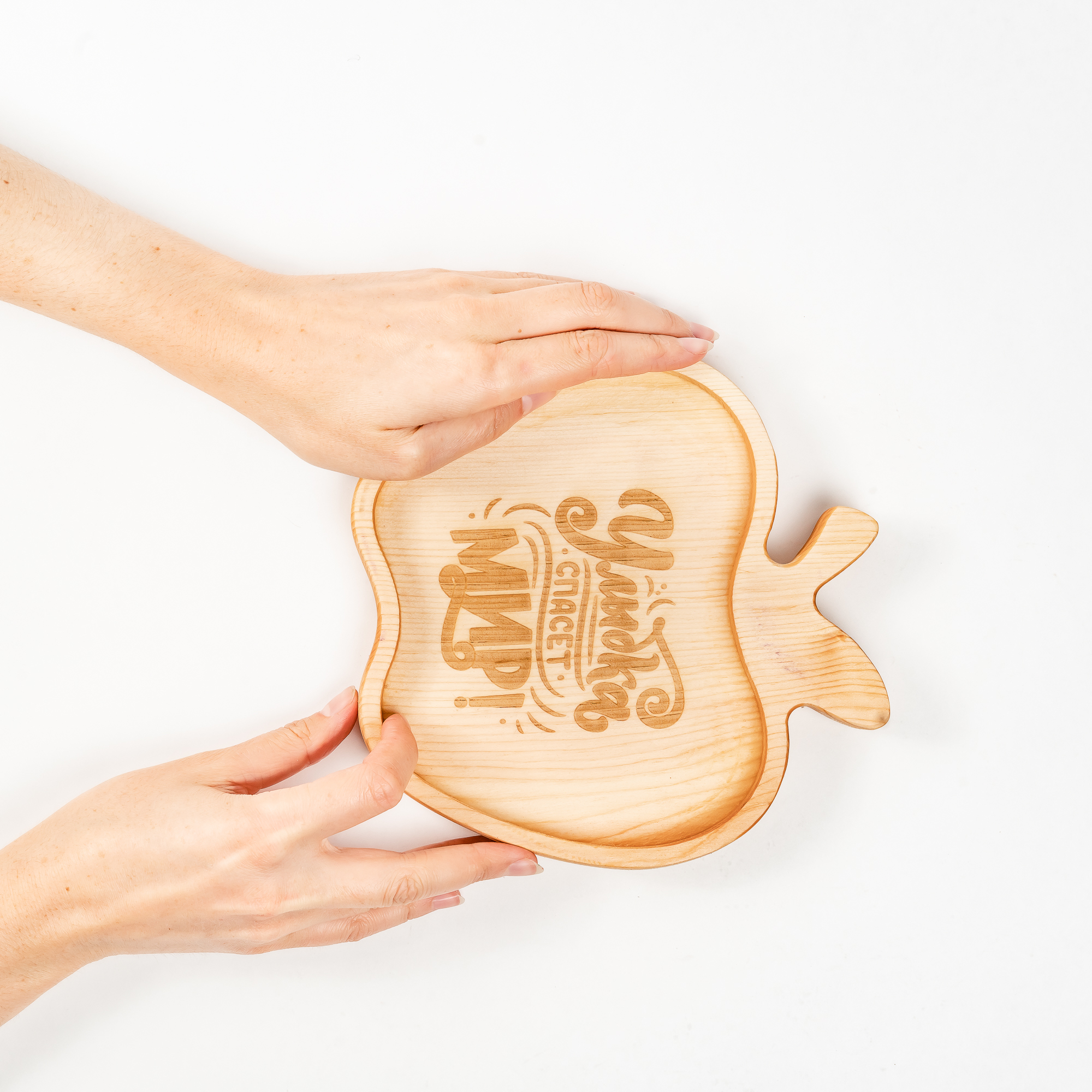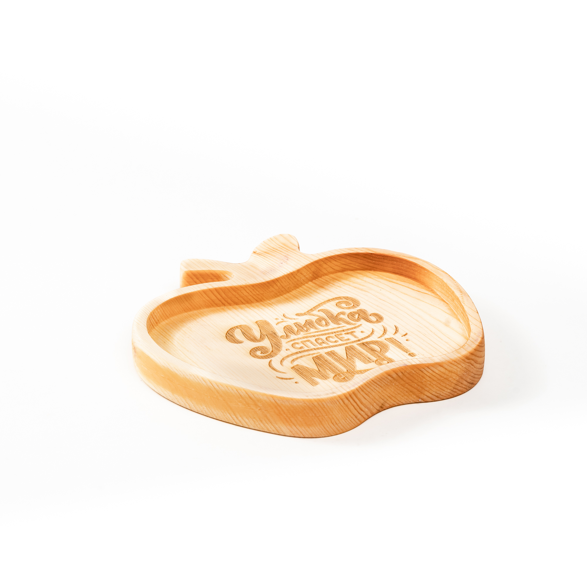 Деревянная менажница из кедра для подачи блюд и закусок с гравировкой "УЛЫБКА СПАСЕТ МИР!". Любителям натуральности придется по душе наша деревянная менажница, имеющая такие плюсы, как красивый узор древесины, не бьется, натуральна, долговечна и подходит для различных блюд. А антибактериальные свойства кедра привлекают ценителей чистоты. Подходит для любых видов закусок: от мясной нарезки до конфет! Пропитана нашим составом на основе растительного масла, кедровой смолы и пчелиного воска. Перед использованием обязательно промыть теплой проточной водой, чтоб смыть остатки масла и морилки. Изделие может стать чуть светлее. Первое время возможно оставление следов от морилки, поэтому лучше для протирания использовать бумажные полотенца.