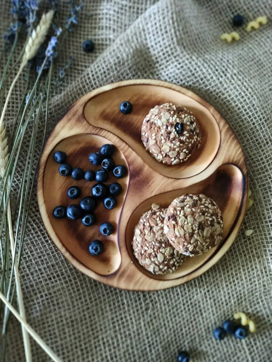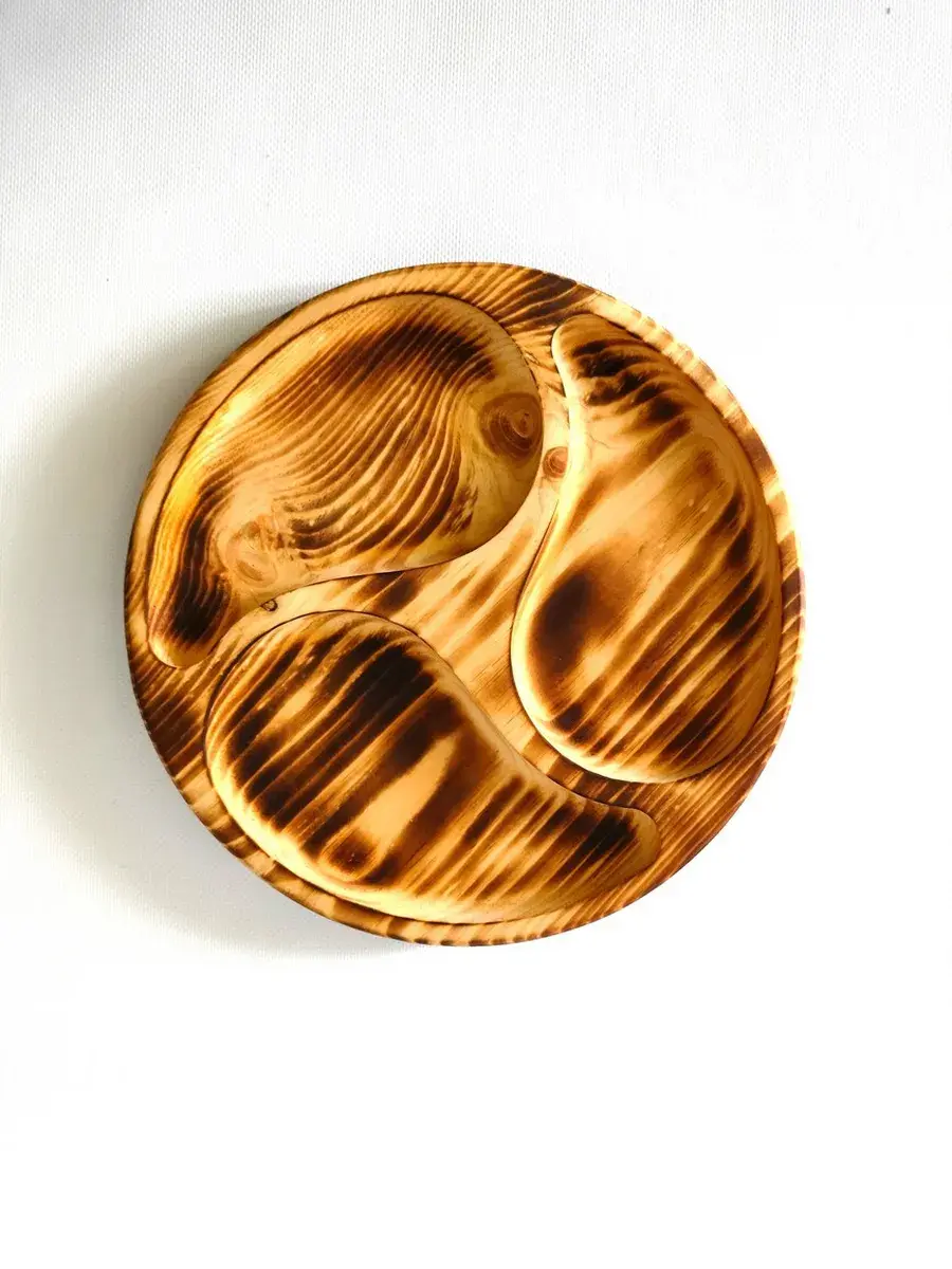 Менажница деревянная цельная из Сибирского кедра ручной работы для кухни. Выполнена из 100% массива, полностью цельная. Многие хозяйки мечтают, чтобы ее семейный обед или праздничный ужин был таким, как в престижном дорогом ресторане, поэтому озадачиваются сервировкой и красивой подачей блюд. В этом случае можно воспользоваться нашей новинкой - менажница для подачи блюд! Слово французского происхождения, от melanger – «смешивать», то есть в буквальном смысле менажница – это тарелка, на которой смешаны разные блюда. Наша экологичная посуда из дерева придется по душе каждому, кто любит вкусно поесть и получить удовольствие от еды. Деревянная менажница для сервировки обладает следующими преимуществами: красивая текстура древесины, очень прочная, натуральная и долговечная. Фитонциды, входящие в состав кедровой древесины, имеют антибактериальные свойства. Они способны обеззараживать воздух, убивать простейшие микроорганизмы и вирусы. Поднос из дерева станет отличным подарком на Новый год, день рождения и новоселье. Менажница подходит для горячих и холодных блюд, для сыра, для закусок и фруктов. Возможно наличие сучков. Идеальная шлифовка позволяет изделию быть очень гладким. Менажница пропитана натуральным маслом, которое, необходимо смыть в теплой проточной воде перед использованием. Не замачивать! Не использовать в посудомоечной машине! Только деликатная мойка. После использования насухо вытереть.