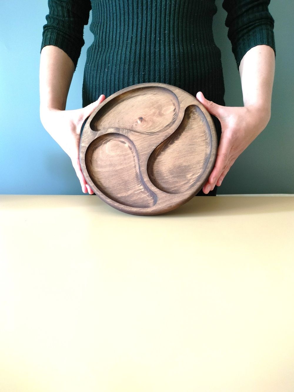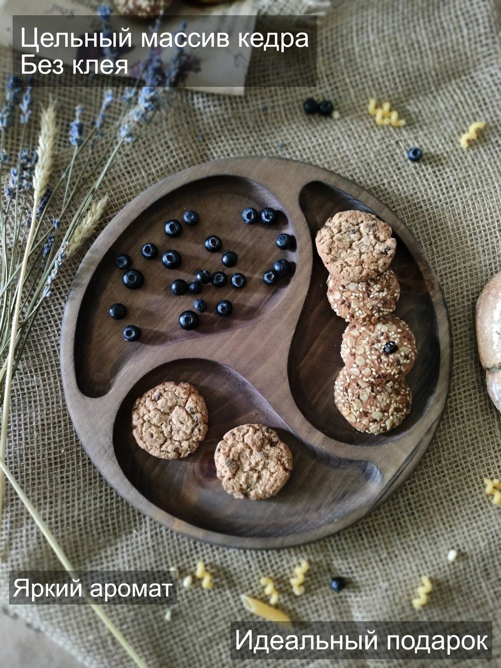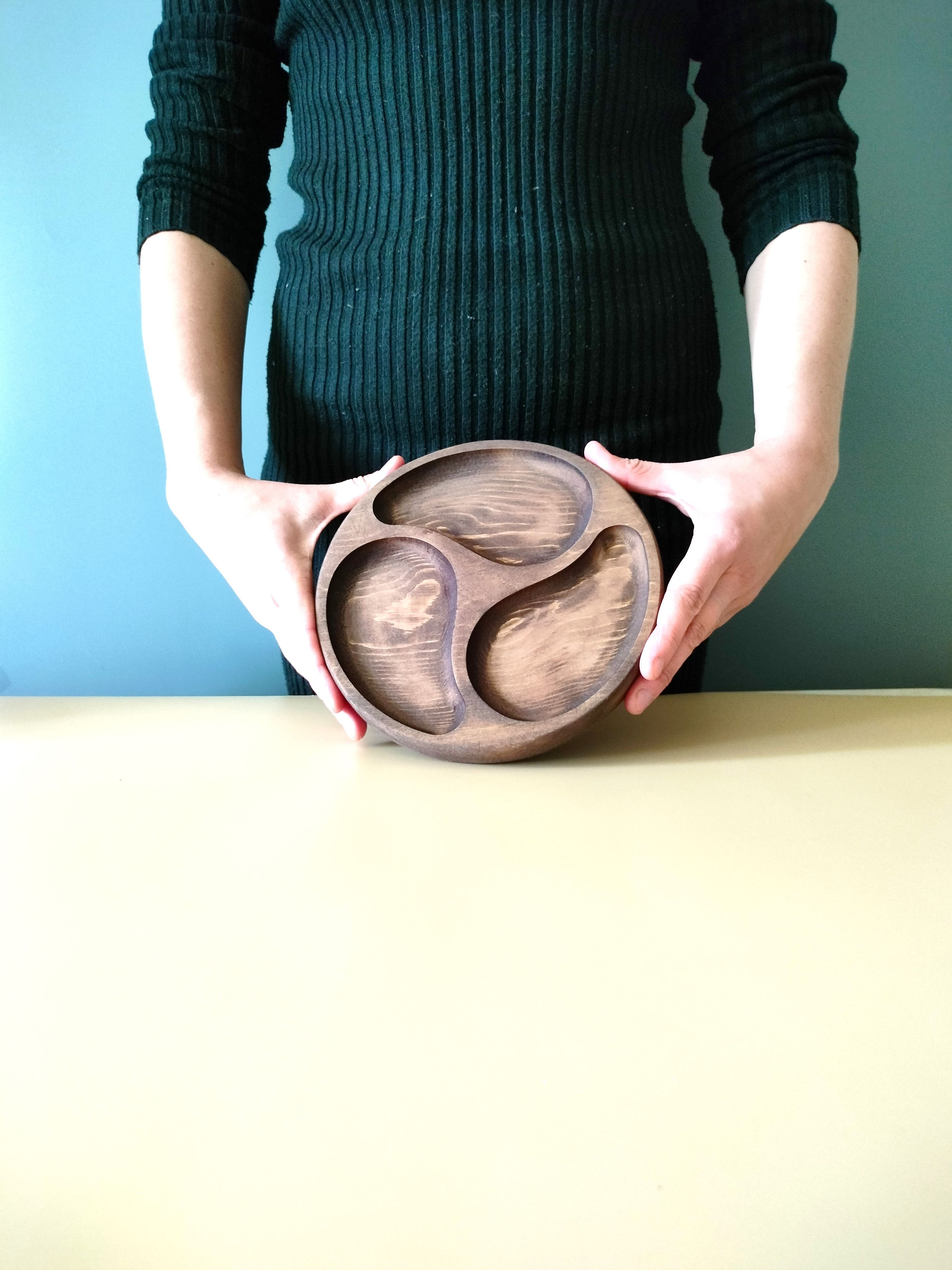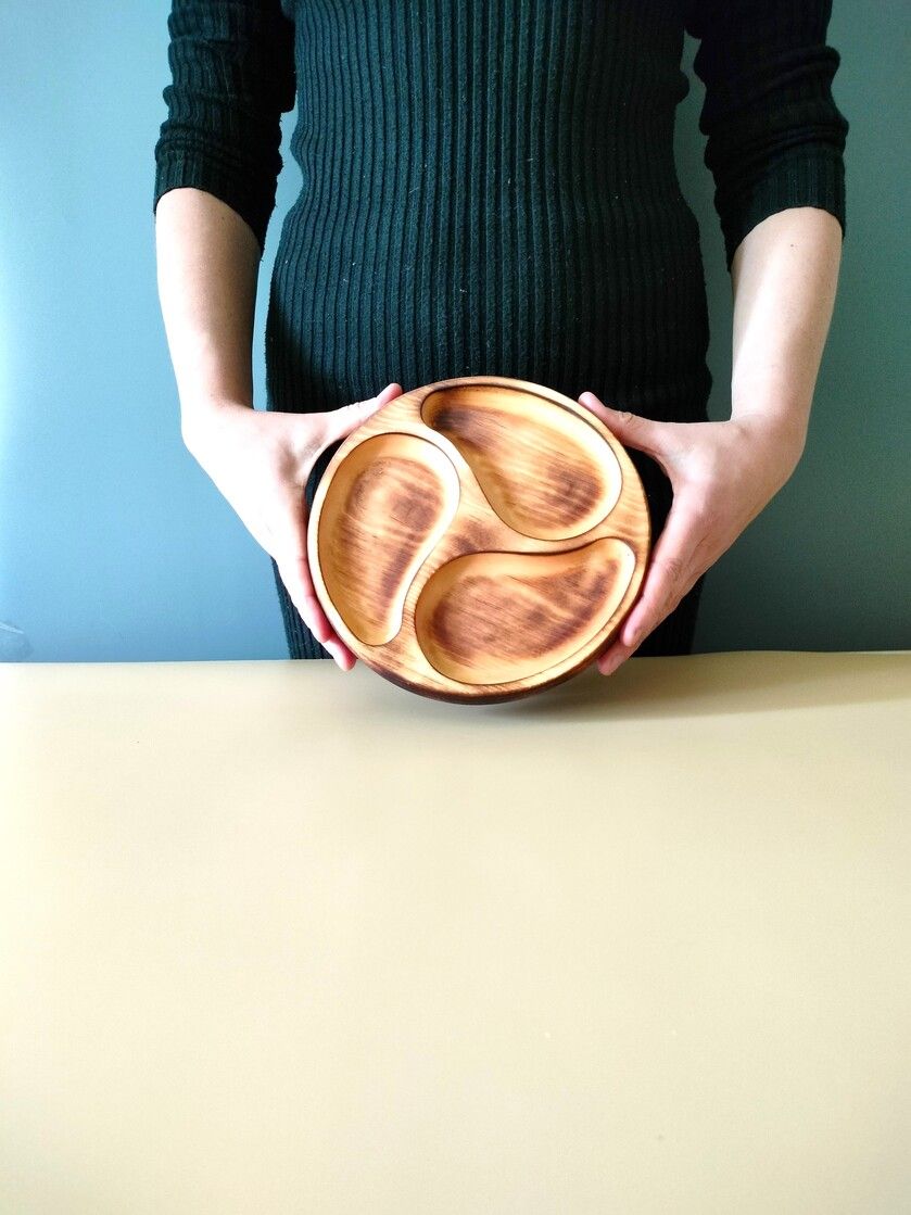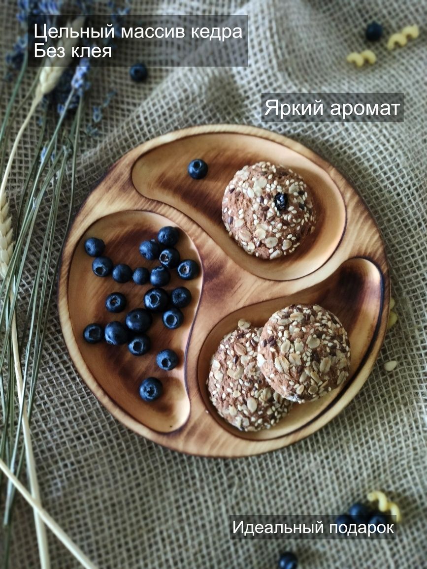 Менажница деревянная цельная из Сибирского кедра ручной работы для кухни. Выполнена из 100% массива, полностью цельная. Многие хозяйки мечтают, чтобы ее семейный обед или праздничный ужин был таким, как в престижном дорогом ресторане, поэтому озадачиваются сервировкой и красивой подачей блюд. В этом случае можно воспользоваться нашей новинкой - менажница для подачи блюд! Слово французского происхождения, от melanger – «смешивать», то есть в буквальном смысле менажница – это тарелка, на которой смешаны разные блюда. Наша экологичная посуда из дерева придется по душе каждому, кто любит вкусно поесть и получить удовольствие от еды. Деревянная менажница для сервировки обладает следующими преимуществами: красивая текстура древесины, очень прочная, натуральная и долговечная. Фитонциды, входящие в состав кедровой древесины, имеют антибактериальные свойства. Они способны обеззараживать воздух, убивать простейшие микроорганизмы и вирусы. Поднос из дерева станет отличным подарком на Новый год, день рождения и новоселье. Менажница подходит для горячих и холодных блюд, для сыра, для закусок и фруктов. Возможно наличие сучков. Идеальная шлифовка позволяет изделию быть очень гладким. Менажница пропитана натуральным маслом, которое, необходимо смыть в теплой проточной воде перед использованием. Не замачивать! Не использовать в посудомоечной машине! Только деликатная мойка. После использования насухо вытереть.