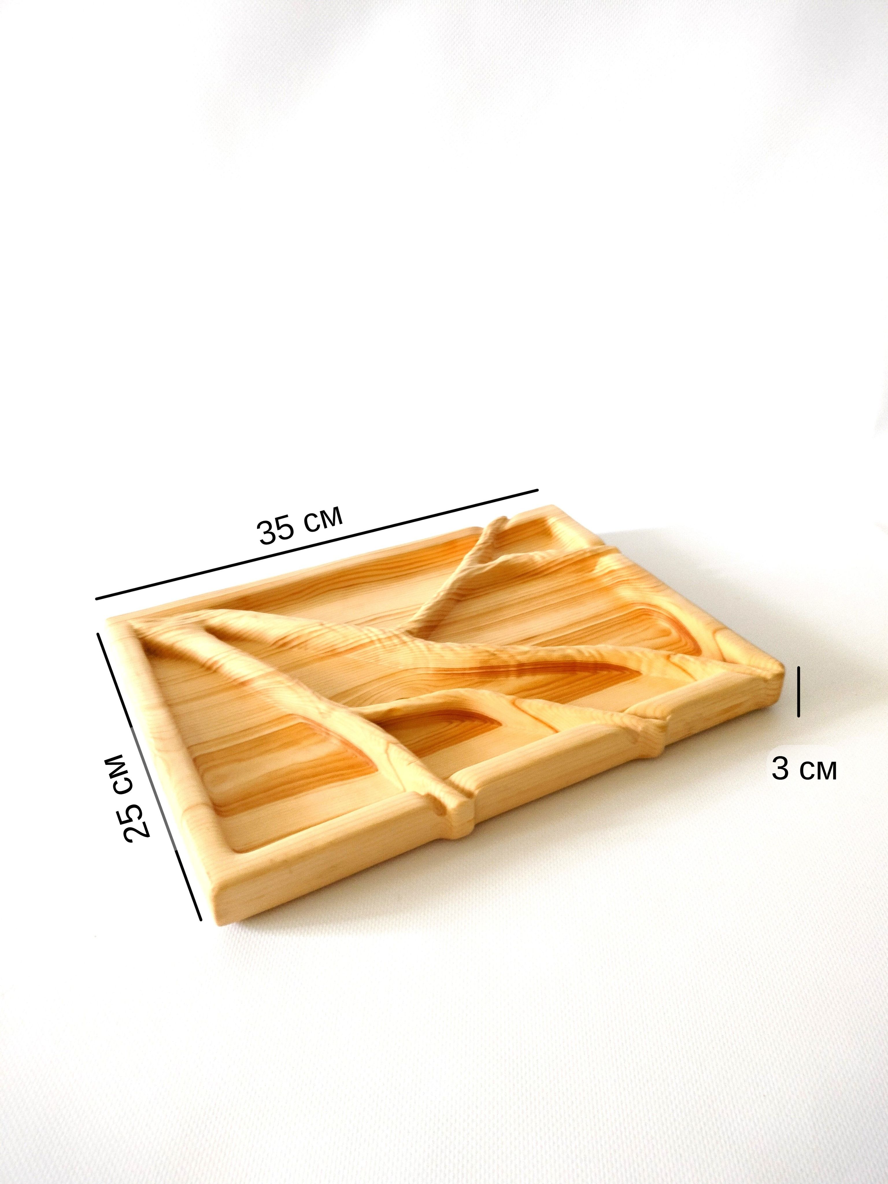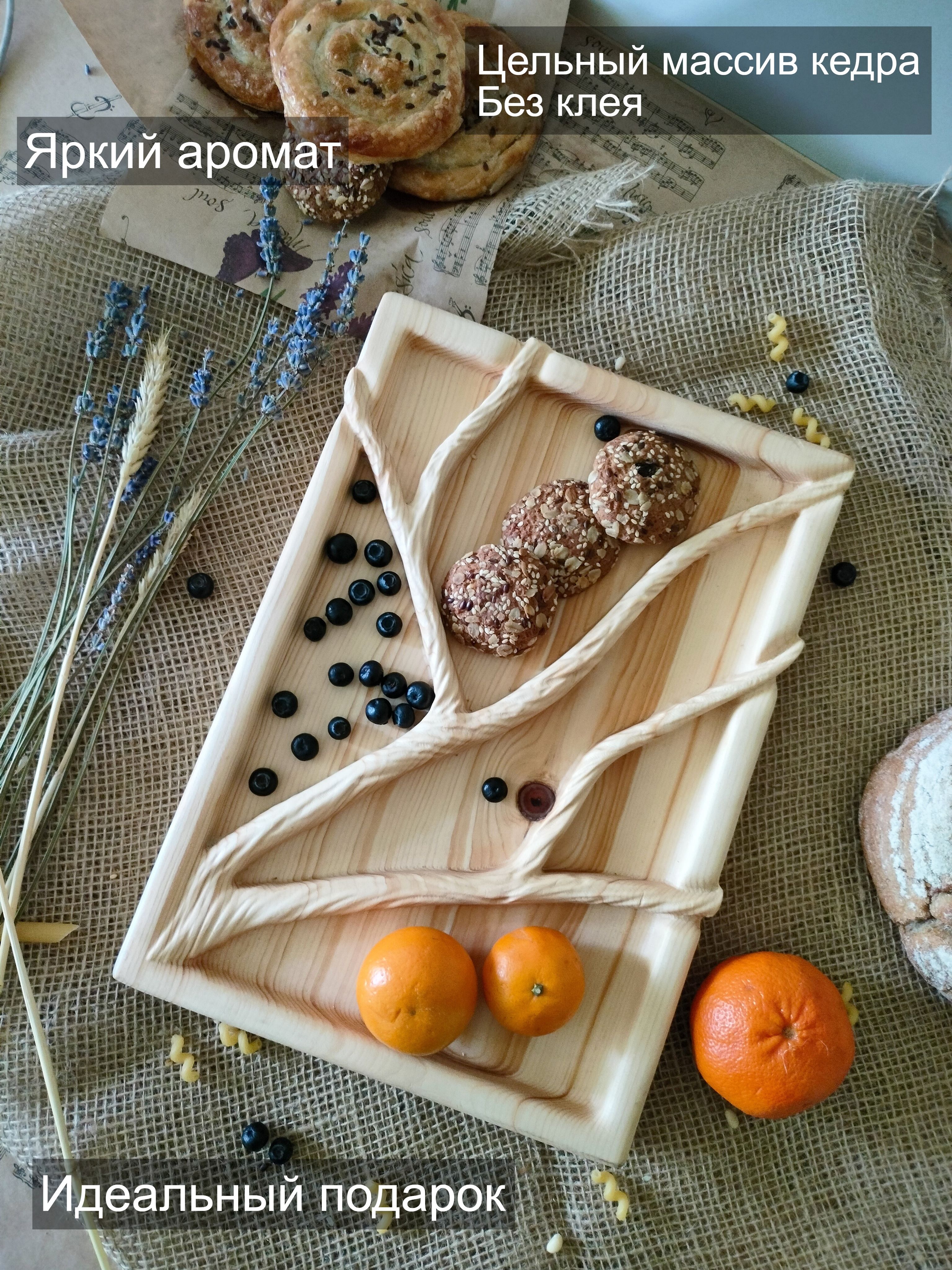 Любителям натуральности придется по душе наша деревянная менажница, имеющая такие плюсы, как красивый узор древесины, не бьется, натуральна, долговечна и подходит для различных блюд. А антибактериальные свойства кедра привлекают ценителей чистоты.Оригинальная тарелка из нескольких отсеков будет очень кстати на простом чаепитие или на детском празднике. Вы можете положить на нее конфеты, печенье, небольшие пирожные и прочие сладости.Если застолье более серьезное, вас также выручит она, наполненная салатами, свежими и маринованными овощами и грибами. Даже обычные домашние заготовки в такой емкости будут выглядеть как дорогое блюдо из ресторана. Кроме того, вы сможете сэкономить место на столе.Возможно наличие сучков.Перед использованием промыть водой и высушить. Пропитана нашим составом на основе растительного масла, кедровой смолы и пчелиного воска.