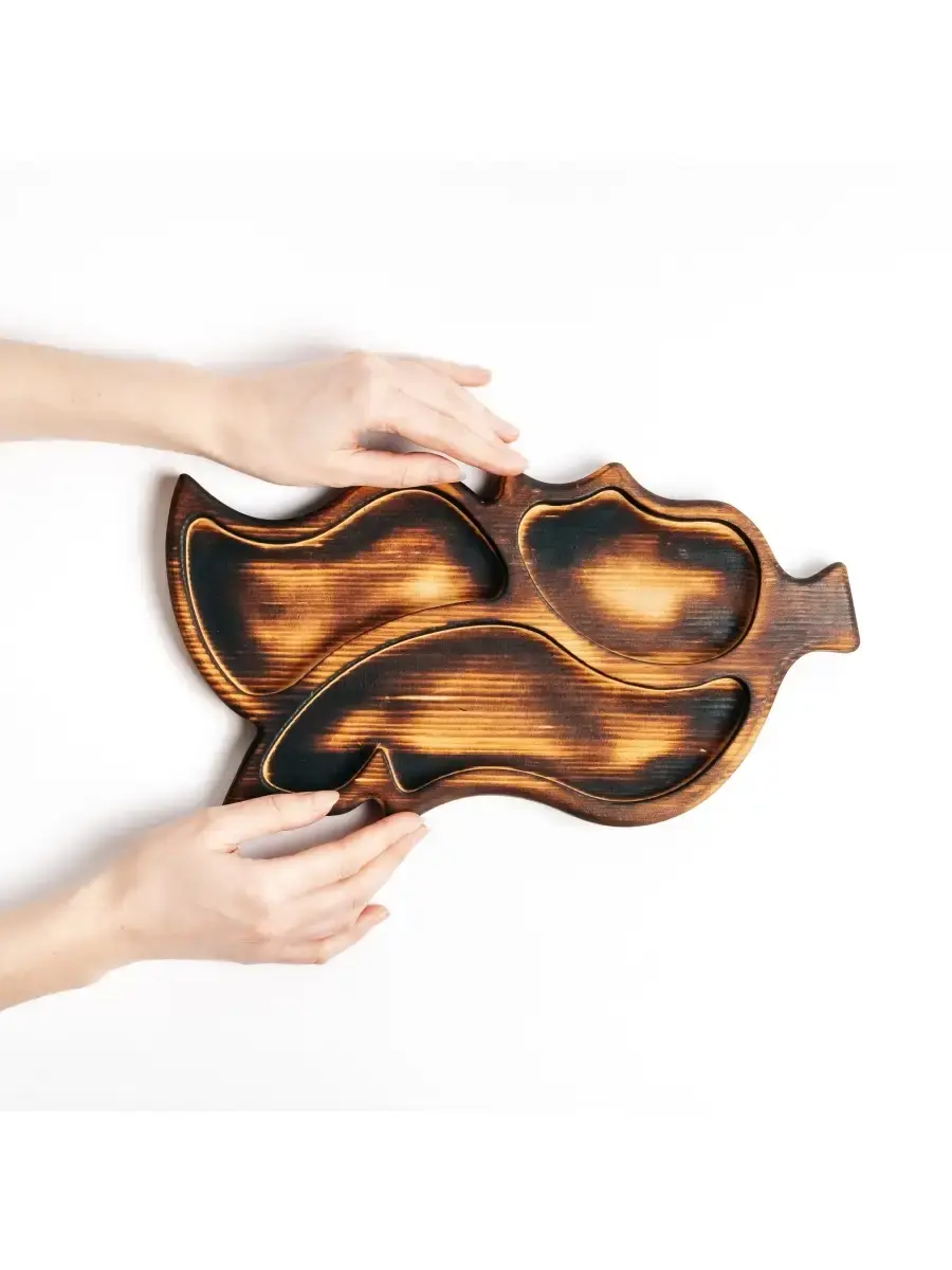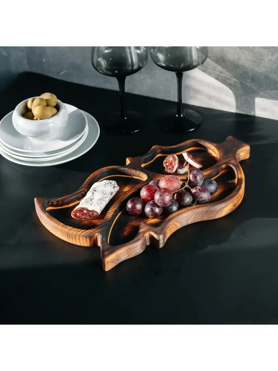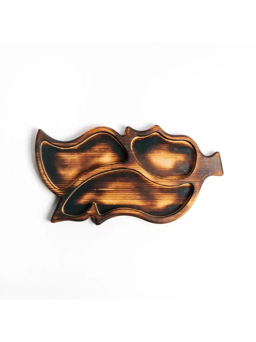 Деревянная менажница из кедра для подачи блюд и закусок "лист". Любителям натуральности придется по душе наша деревянная менажница, имеющая такие плюсы, как красивый узор древесины, не бьется, натуральна, долговечна и подходит для различных блюд. А антибактериальные свойства кедра привлекают ценителей чистоты. Если застолье более серьезное, вас также выручит она, наполненная салатами, свежими и маринованными овощами и грибами. Даже обычные домашние заготовки в такой емкости будут выглядеть как дорогое блюдо из ресторана. Кроме того, вы сможете сэкономить место на столе.Размер: 35х20х2,2 см.
