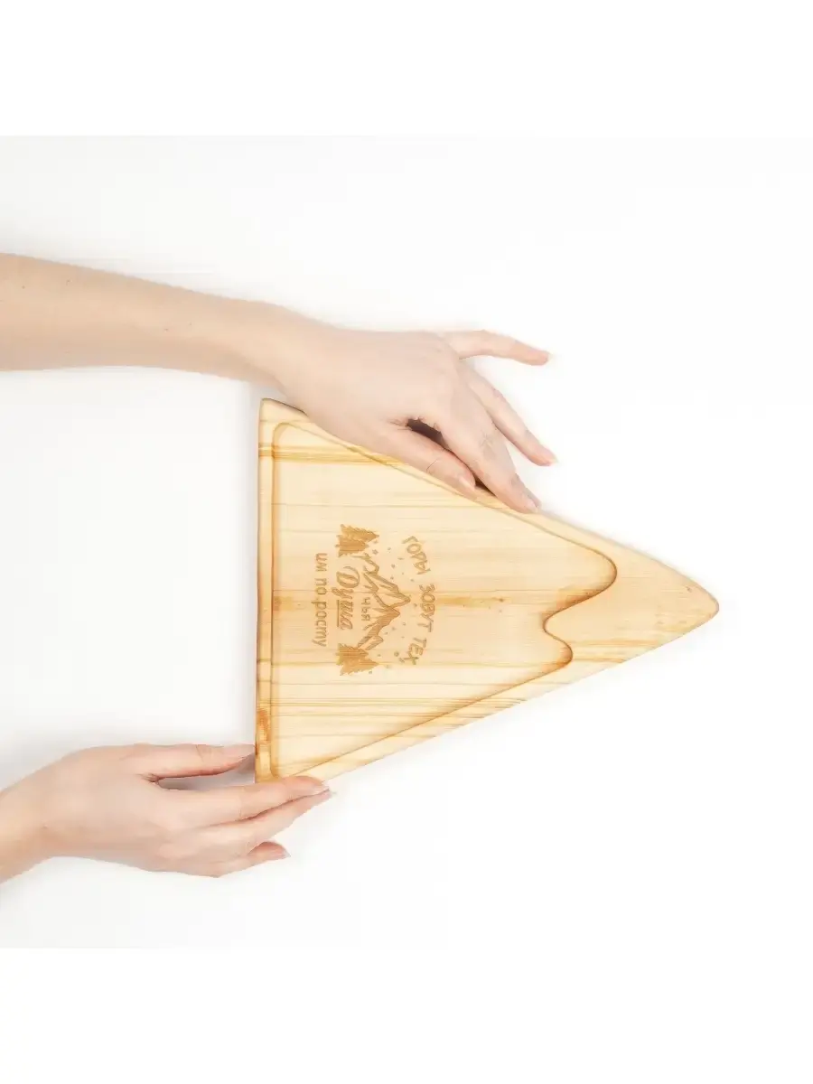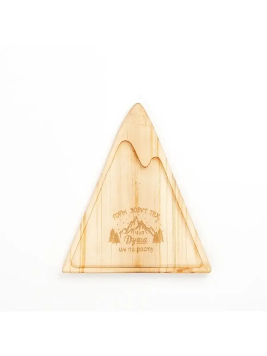 Деревянная менажница "Горы" из кедра для подачи блюд и закусок с гравировкой! Любителям натуральности придется по душе наша деревянная менажница, имеющая такие плюсы, как красивый узор древесины, не бьется, натуральна, долговечна и подходит для различных блюд. А антибактериальные свойства кедра привлекают ценителей чистоты. Настоящий эко продукт! Пропитана нашим составом на основе растительного масла, кедровой смолы и пчелиного воска. Рарзмер: 23х26х2,2 см.