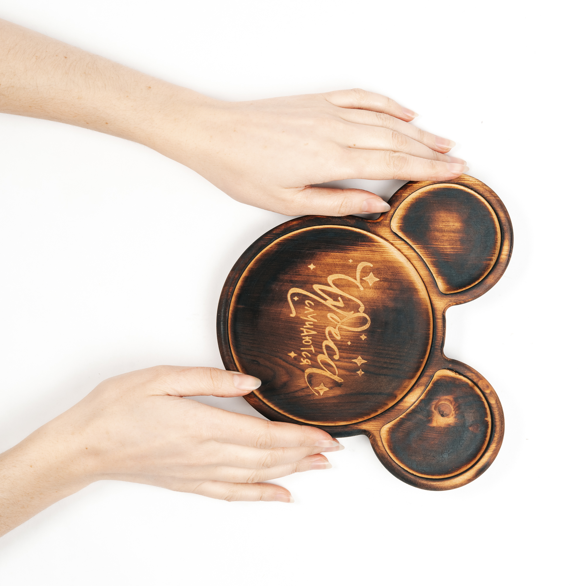 Менажница из древесины кедра для подачи блюд и закусок с гравировкой "Чудеса случаются". Любителям натуральности придется по душе наша деревянная менажница, имеющая такие плюсы, как красивый узор древесины, не бьется, натуральна, долговечна и подходит для различных блюд. А антибактериальные свойства кедра привлекают ценителей чистоты. Подходит для любых закусок! Возможно наличие сучков. Пропитана нашим составом на основе растительного масла, кедровой смолы и пчелиного воска.