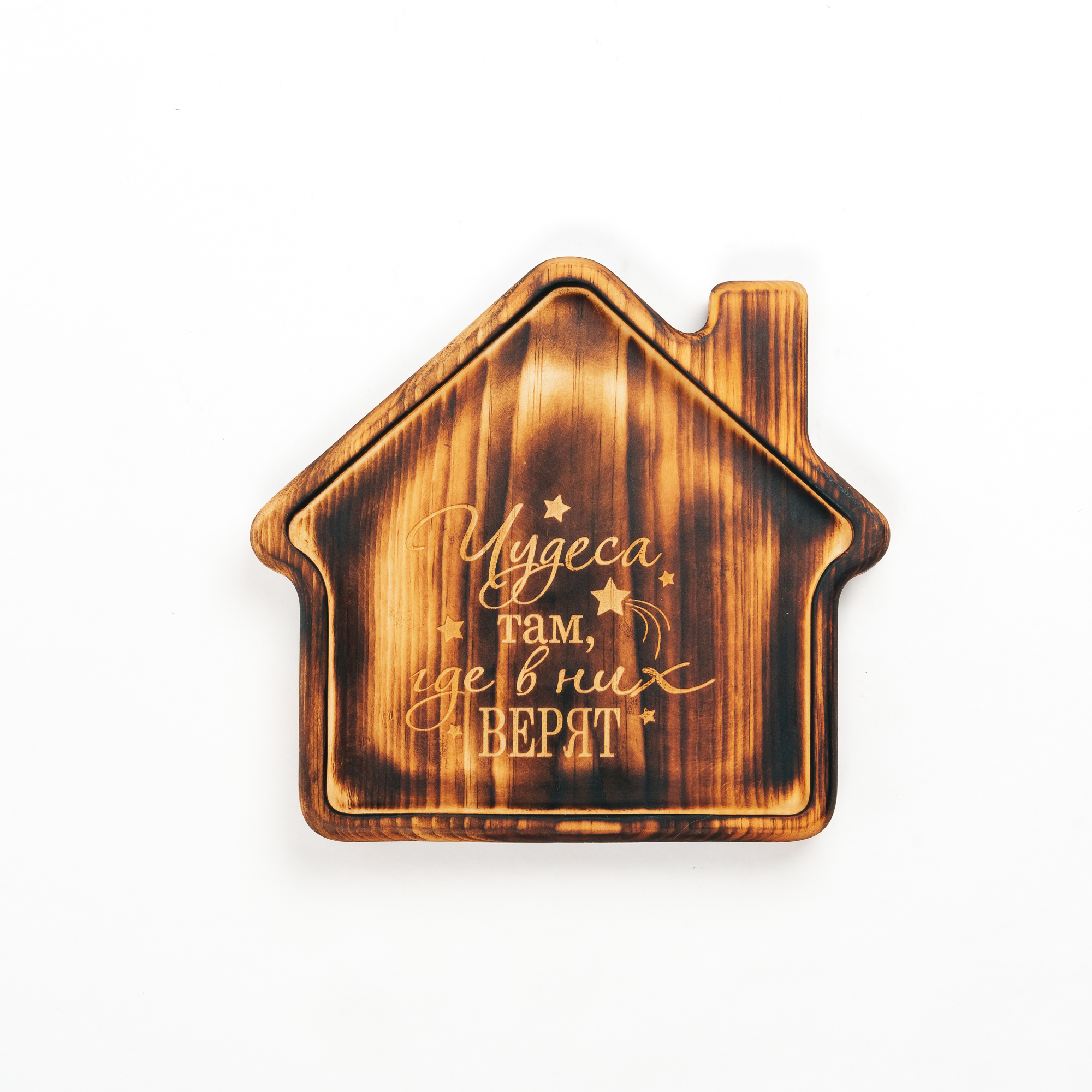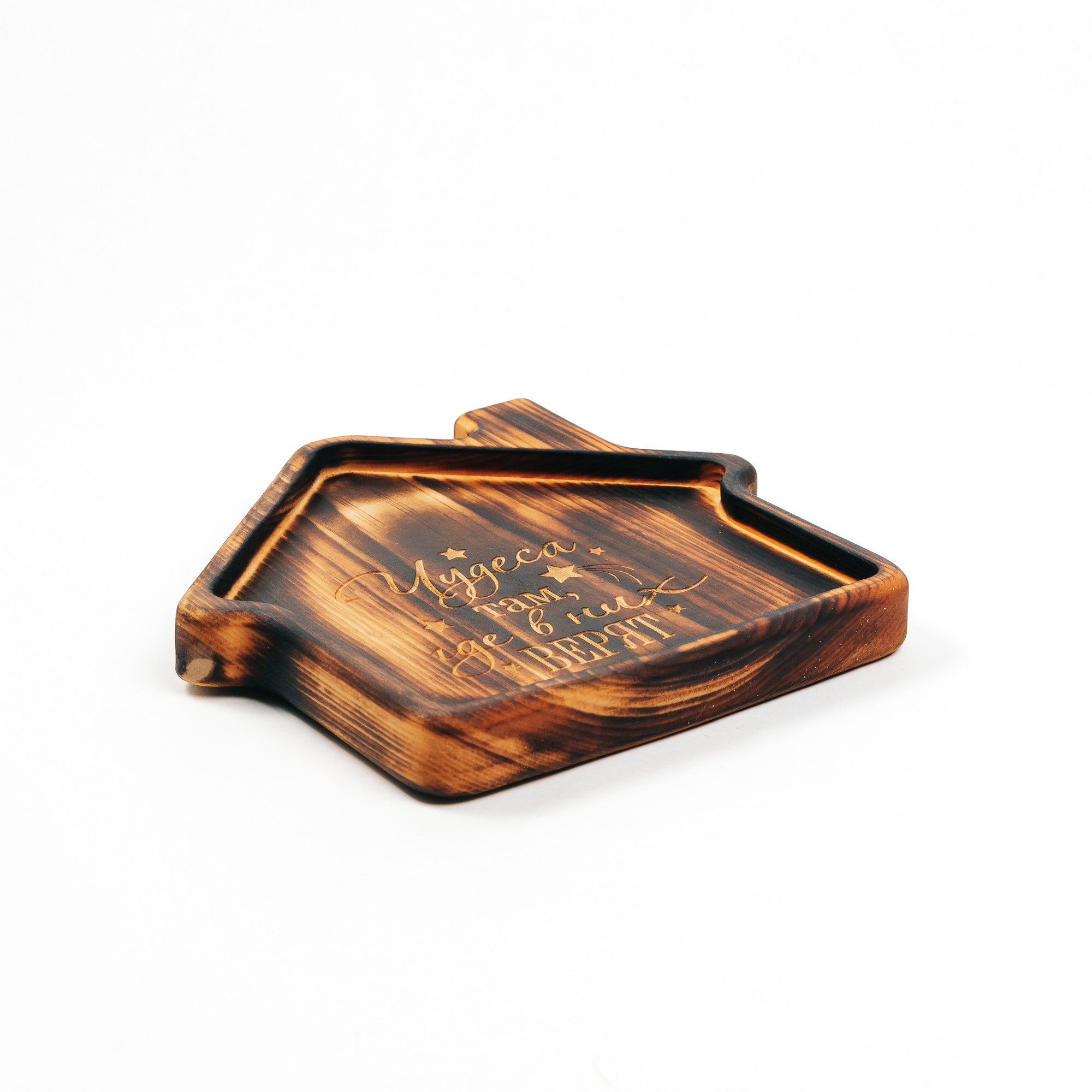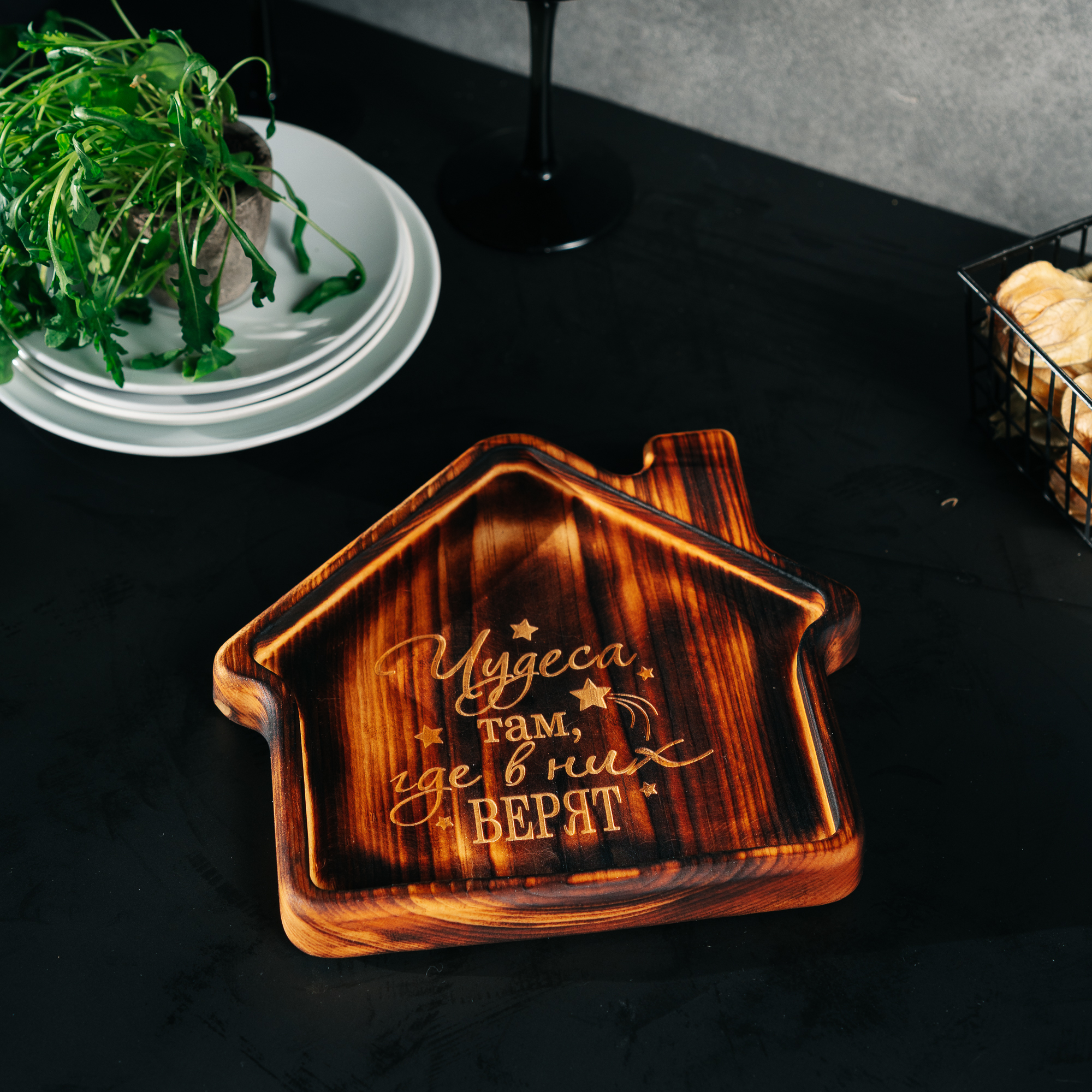 Менажница из кедра для подачи блюд и закусок с гравировкой "Чудеса там, где в них верят". Любителям натуральности придется по душе наша деревянная менажница, имеющая такие плюсы, как красивый узор древесины, не бьется, натуральна, долговечна и подходит для различных блюд. А антибактериальные свойства кедра привлекают ценителей чистоты. Подходит для любых видов закусок: от мясной нарезки до конфет! Пропитана нашим составом на основе растительного масла, кедровой смолы и пчелиного воска.