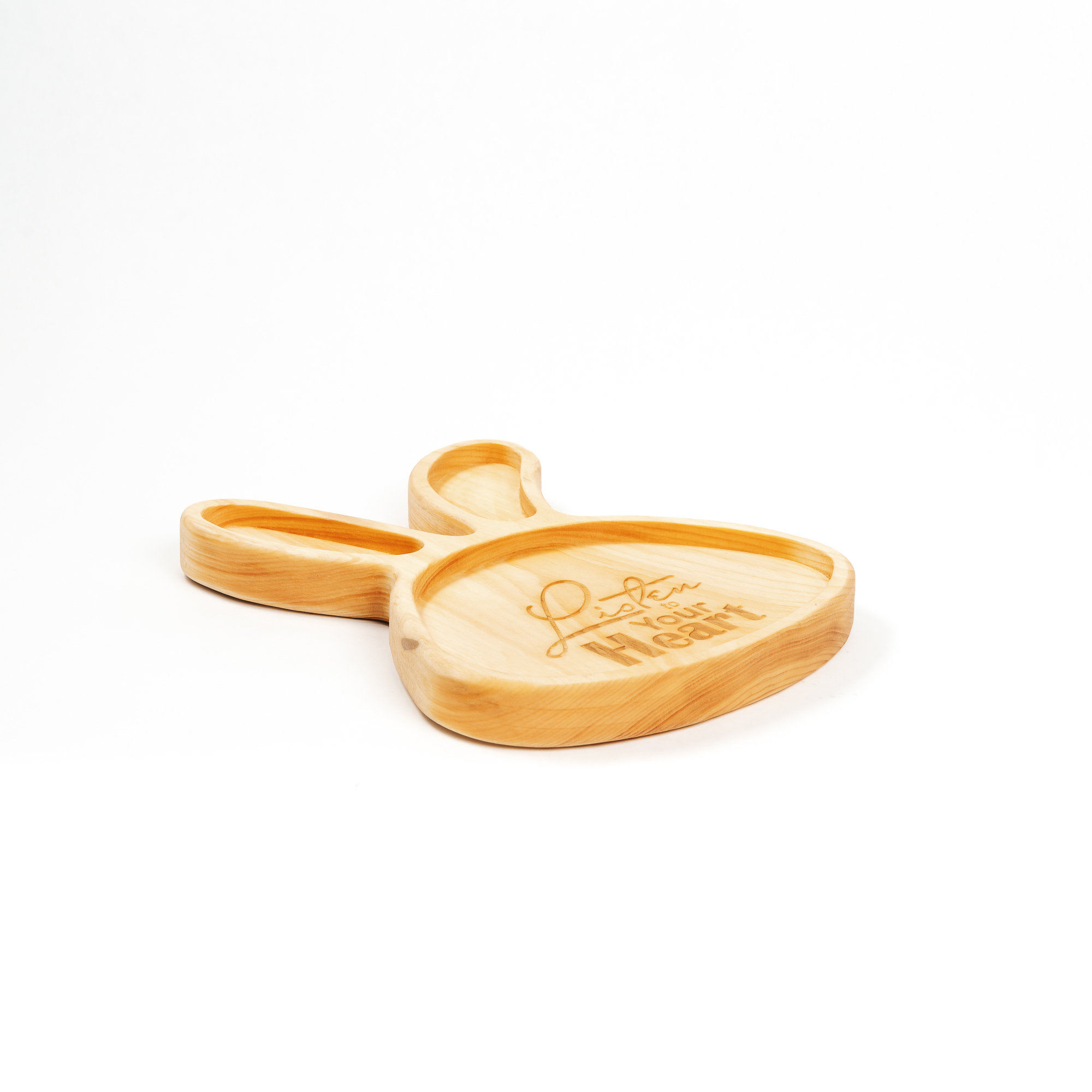 Деревянная менажница из кедра для подачи блюд и закусок с гравировкой "Listen to your heart".