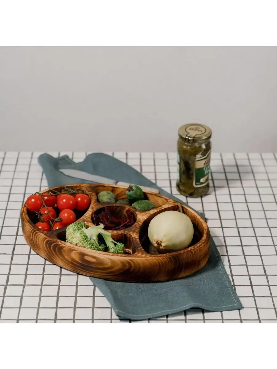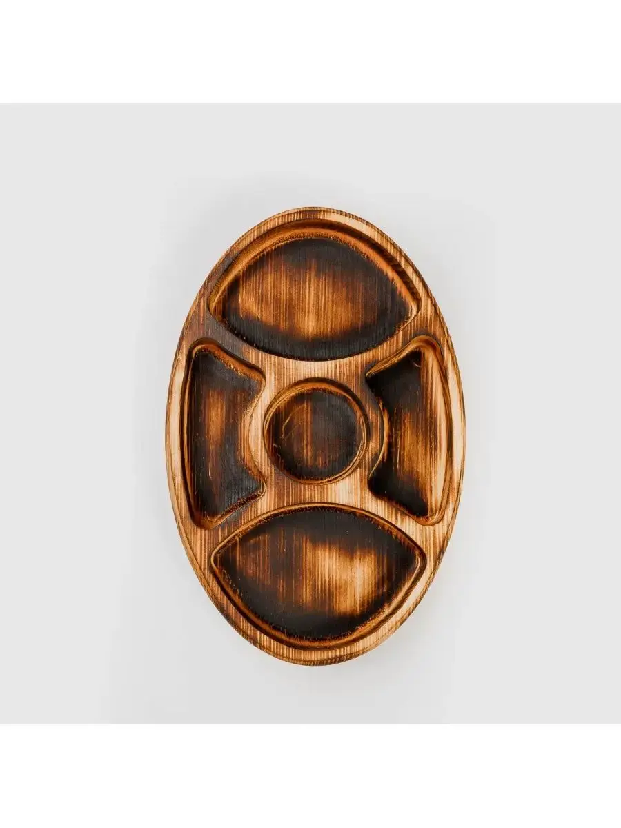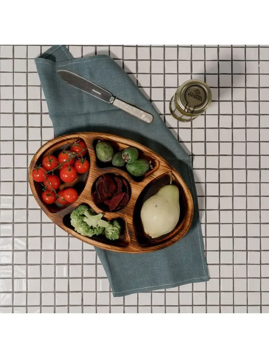 Менажница с 5 ячейками из Сибирского кедра ручной работы для кухни. Многие хозяйки мечтают, чтобы ее семейный обед или праздничный ужин был таким, как в престижном дорогом ресторане, поэтому озадачиваются сервировкой и красивой подачей блюд. В этом случае можно воспользоваться нашей новинкой - менажница для подачи блюд!Так что же такое менажница?Слово французского происхождения, от melanger – «смешивать», то есть в буквальном смысле менажница – это тарелка, на которой смешаны разные блюда.Наша экологичная посуда из дерева придется всем по душе. Деревянная менажница для сервировки обладает следующими преимуществами: красивый узор древесины, очень прочная, натуральная, долговечна и подходит для различных блюд. А антибактериальные свойства Сибирского кедра привлекают ценителей чистоты. Менажница из дерева станет отличным подарком на Новый год, день рождения и новоселье.Менажница подходит для горячих и холодных блюд, для закусок и для фруктов. Возможно наличие сучков. Идеальная шлифовка позволяет изделию быть очень гладким. Менажница пропитана натуральным маслом, которое, необходимо смыть в теплой проточной воде перед использованием. Размеры менажницы: Длина 195 мм, Ширина 295 мм, Высота 45 мм, Вес 460 грамм.