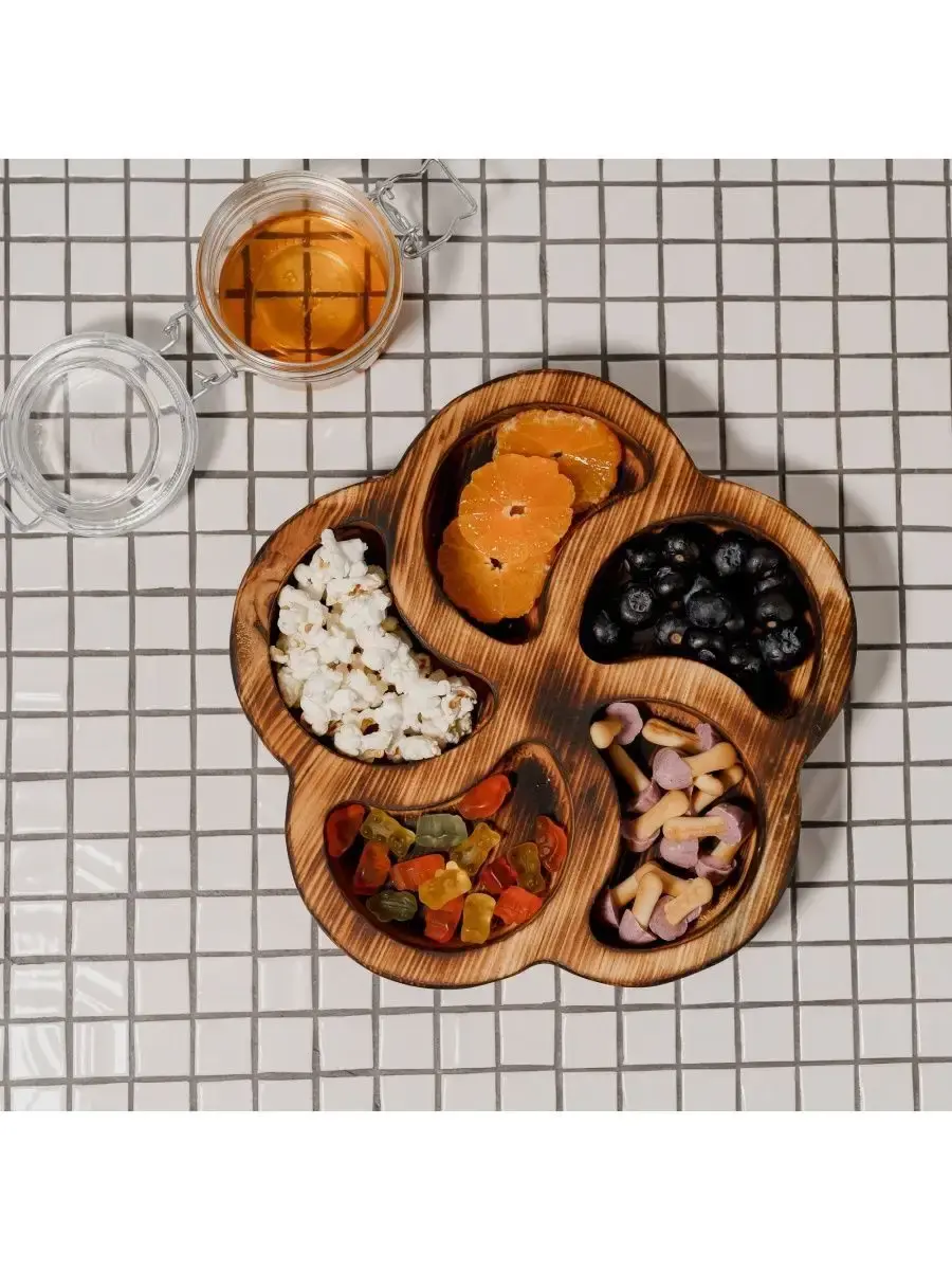 Менажница c 5 ячейками из Сибирского кедра ручной работы для кухни. Многие хозяйки мечтают, чтобы ее семейный обед или праздничный ужин был таким, как в престижном дорогом ресторане, поэтому озадачиваются сервировкой и красивой подачей блюд. В этом случае можно воспользоваться нашей новинкой - менажница для подачи блюд!Так что же такое менажница?Слово французского происхождения, от melanger – «смешивать», то есть в буквальном смысле менажница – это тарелка, на которой смешаны разные блюда.Наша экологичная посуда из дерева придется всем по душе. Деревянная менажница для сервировки обладает следующими преимуществами: красивый узор древесины, очень прочная, натуральная, долговечна и подходит для различных блюд. А антибактериальные свойства Сибирского кедра привлекают ценителей чистоты. Менажница из дерева станет отличным подарком на Новый год, день рождения и новоселье.Менажница подходит для горячих и холодных блюд, для закусок и для фруктов. Возможно наличие сучков. Идеальная шлифовка позволяет изделию быть очень гладким. Менажница пропитана натуральным маслом, которое, необходимо смыть в теплой проточной воде перед использованием. Размеры менажницы: Длина 250 мм, Ширина 250 мм, Высота 45 мм, Вес 550 грамм.