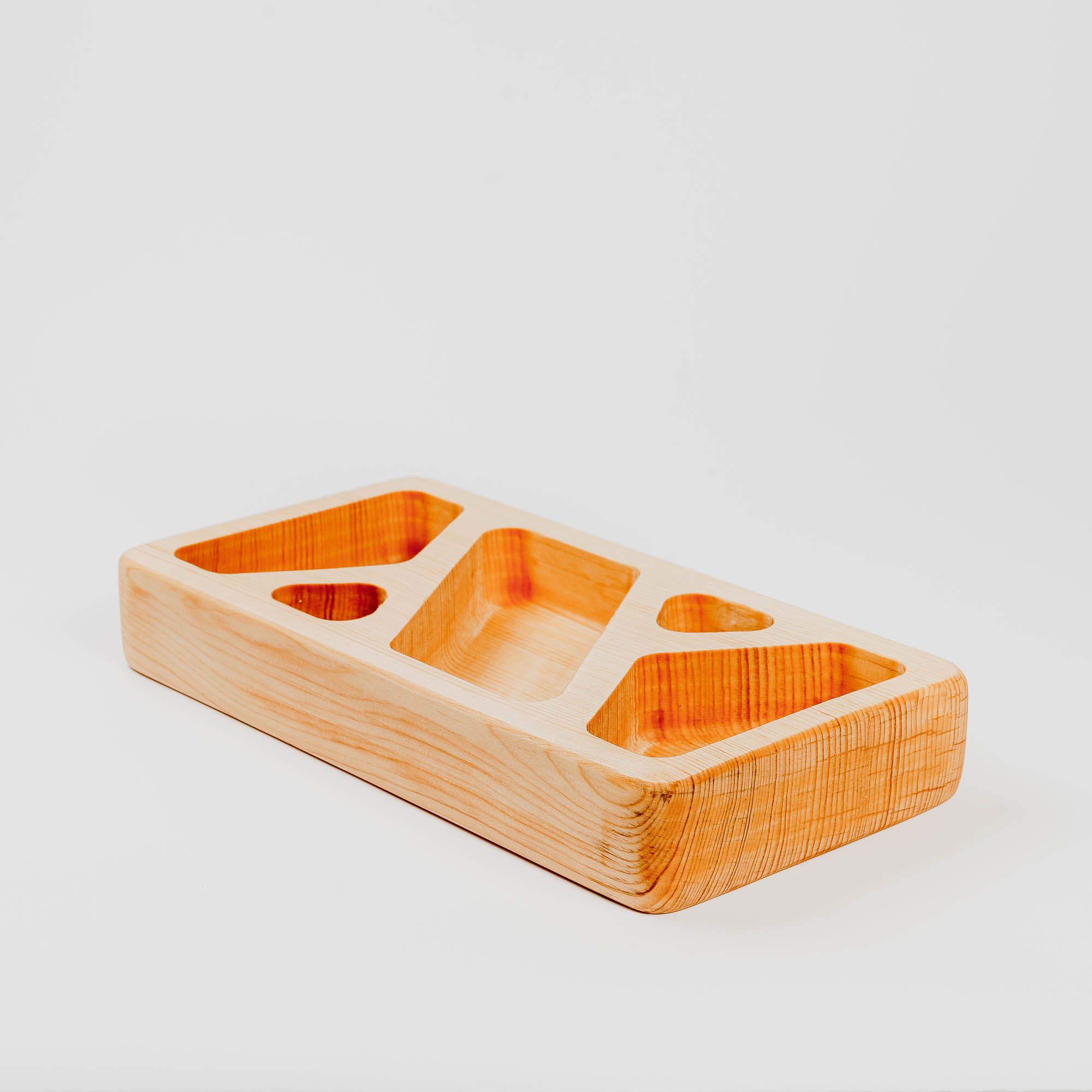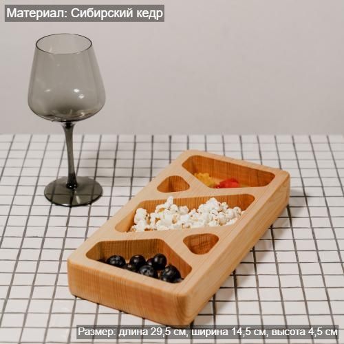 Наша экологичная посуда из дерева придется всем по душе. Деревянная менажница для сервировки обладает следующими преимуществами: красивый узор древесины, очень прочная, натуральная, долговечна и подходит для различных блюд. А антибактериальные свойства Сибирского кедра привлекают ценителей чистоты.