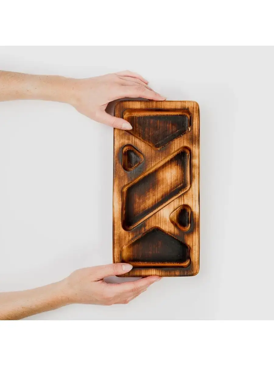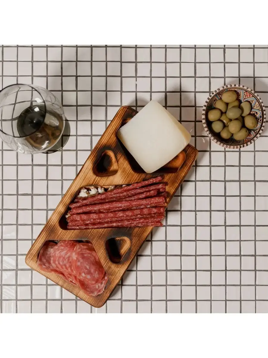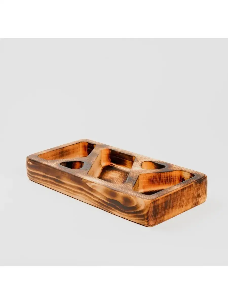Менажница с 5 ячейками из Сибирского кедра ручной работы для кухни. Многие хозяйки мечтают, чтобы ее семейный обед или праздничный ужин был таким, как в престижном дорогом ресторане, поэтому озадачиваются сервировкой и красивой подачей блюд. В этом случае можно воспользоваться нашей новинкой - менажница для подачи блюд!Так что же такое менажница?Слово французского происхождения, от melanger – «смешивать», то есть в буквальном смысле менажница – это тарелка, на которой смешаны разные блюда.Наша экологичная посуда из дерева придется всем по душе. Деревянная менажница для сервировки обладает следующими преимуществами: красивый узор древесины, очень прочная, натуральная, долговечна и подходит для различных блюд. А антибактериальные свойства Сибирского кедра привлекают ценителей чистоты. Менажница из дерева станет отличным подарком на Новый год, день рождения и новоселье.Менажница подходит для горячих и холодных блюд, для закусок и для фруктов. Возможно наличие сучков. Идеальная шлифовка позволяет изделию быть очень гладким. Менажница пропитана натуральным маслом, которое, необходимо смыть в теплой проточной воде перед использованием. Размеры менажницы: Длина 145 мм, Ширина 295 мм, Высота 45 мм, Вес 540 грамм.