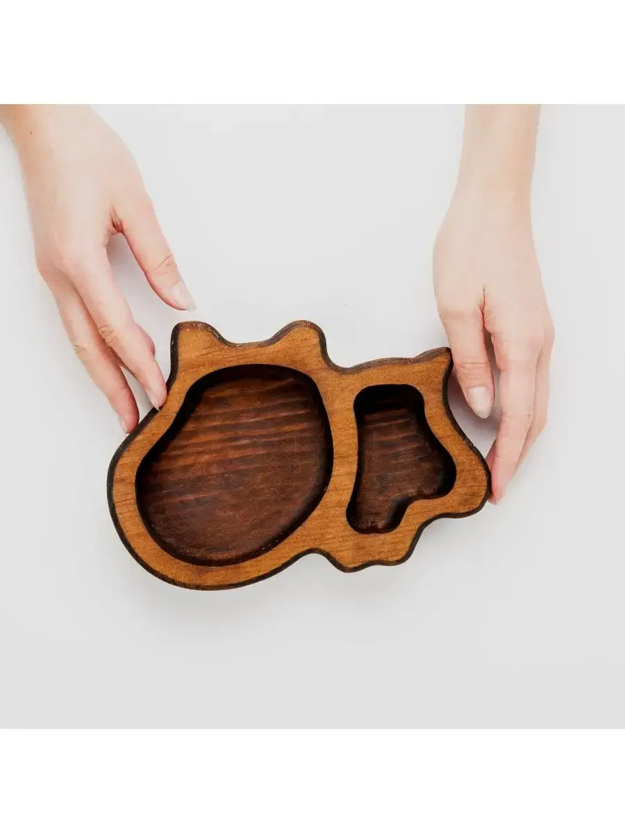 Менажница из Сибирского кедра ручной работы для кухни. Многие хозяйки мечтают, чтобы ее семейный обед или праздничный ужин был таким, как в престижном дорогом ресторане, поэтому озадачиваются сервировкой и красивой подачей блюд. В этом случае можно воспользоваться нашей новинкой - менажница для подачи блюд!Так что же такое менажница?Слово французского происхождения, от melanger – «смешивать», то есть в буквальном смысле менажница – это тарелка, на которой смешаны разные блюда.Наша экологичная посуда из дерева придется всем по душе. Деревянная менажница для сервировки обладает следующими преимуществами: красивый узор древесины, очень прочная, натуральная, долговечна и подходит для различных блюд. А антибактериальные свойства Сибирского кедра привлекают ценителей чистоты. Менажница из дерева станет отличным подарком на Новый год, день рождения и новоселье.Менажница подходит для горячих и холодных блюд, для закусок и для фруктов. Возможно наличие сучков. Идеальная шлифовка позволяет изделию быть очень гладким. Менажница пропитана натуральным маслом, которое, необходимо смыть в теплой проточной воде перед использованием. Размеры менажницы: Длина 140 мм, Ширина 190 мм, Высота 45 мм, Вес 250 грамм.
