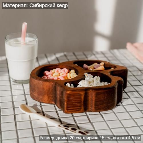Наша экологичная посуда из дерева придется всем по душе. Деревянная менажница для сервировки обладает следующими преимуществами: красивый узор древесины, очень прочная, натуральная, долговечна и подходит для различных блюд. А антибактериальные свойства Сибирского кедра привлекают ценителей чистоты.