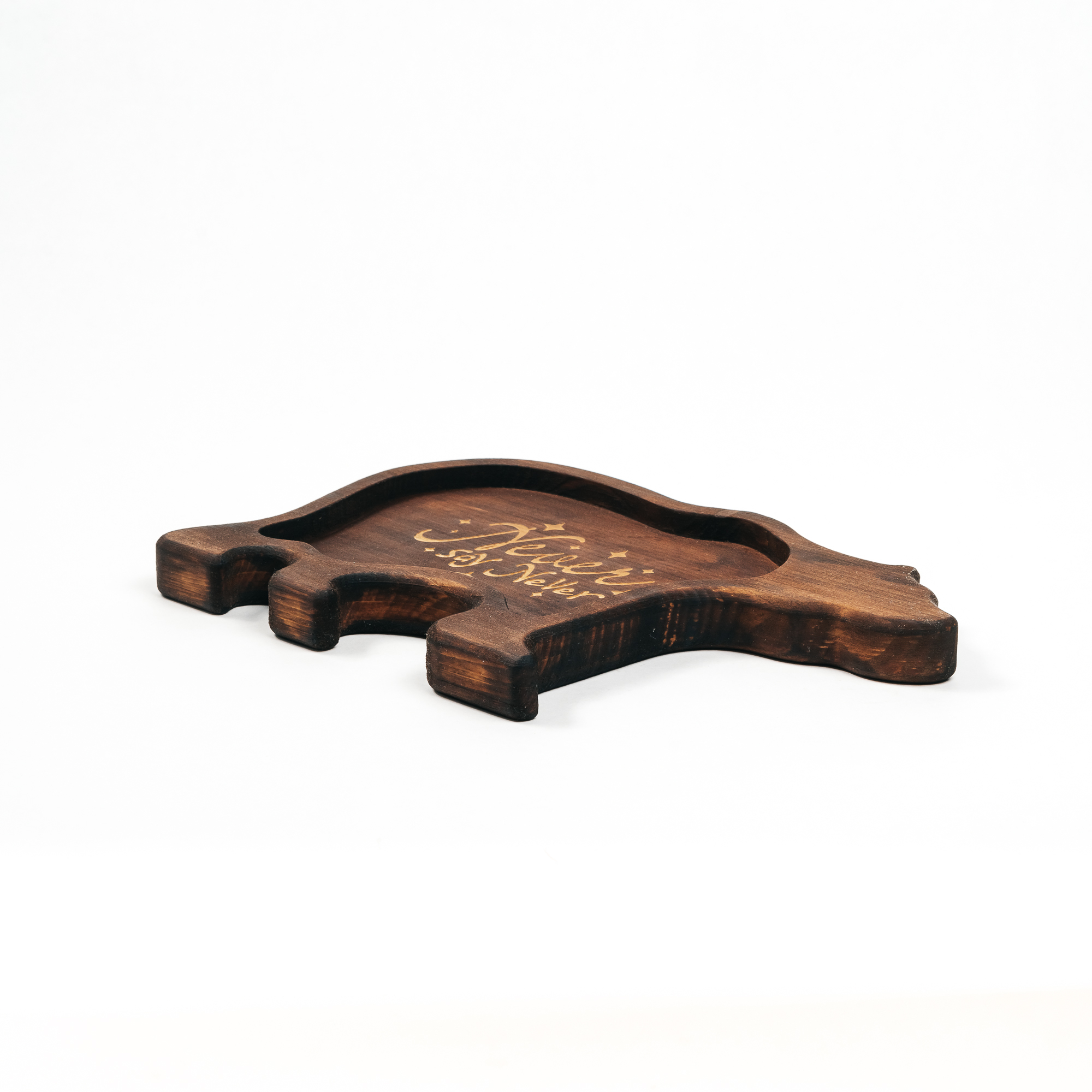 Менажница "Медведь" из древсесины кедра для подачи блюд и закусок с гравировкой "Never say Never". Любителям натуральности придется по душе наша деревянная менажница, имеющая такие плюсы, как красивый узор древесины, не бьется, натуральна, долговечна и подходит для различных блюд. А антибактериальные свойства кедра привлекают ценителей чистоты. Возможно наличие сучков. Пропитана нашим составом на основе растительного масла, кедровой смолы и пчелиного воска.