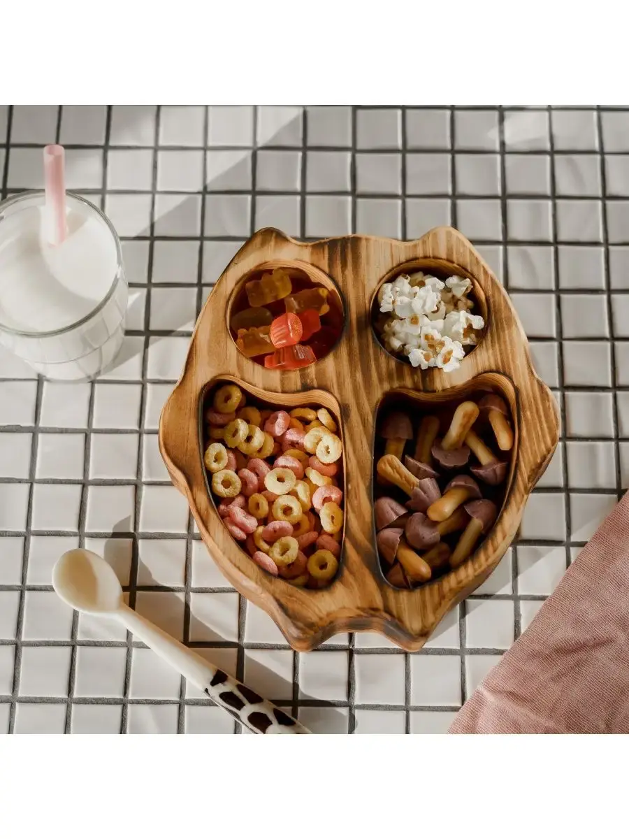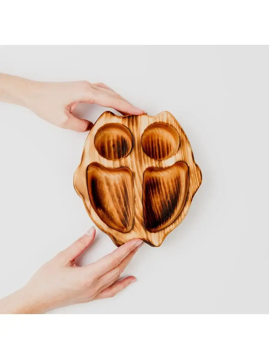 Менажница "сова" из Сибирского кедра ручной работы для кухни. Многие хозяйки мечтают, чтобы ее семейный обед или праздничный ужин был таким, как в престижном дорогом ресторане, поэтому озадачиваются сервировкой и красивой подачей блюд. В этом случае можно воспользоваться нашей новинкой - менажница для подачи блюд!Так что же такое менажница?Слово французского происхождения, от melanger – «смешивать», то есть в буквальном смысле менажница – это тарелка, на которой смешаны разные блюда.Наша экологичная посуда из дерева придется всем по душе. Деревянная менажница для сервировки обладает следующими преимуществами: красивый узор древесины, очень прочная, натуральная, долговечна и подходит для различных блюд. А антибактериальные свойства Сибирского кедра привлекают ценителей чистоты. Менажница из дерева станет отличным подарком на Новый год, день рождения и новоселье.Менажница подходит для горячих и холодных блюд, для закусок и для фруктов. Возможно наличие сучков. Идеальная шлифовка позволяет изделию быть очень гладким. Менажница пропитана натуральным маслом, которое, необходимо смыть в теплой проточной воде перед использованием. Размеры менажницы: Длина 190 мм, Ширина 175 мм, Высота 45 мм, Вес 305 грамм.